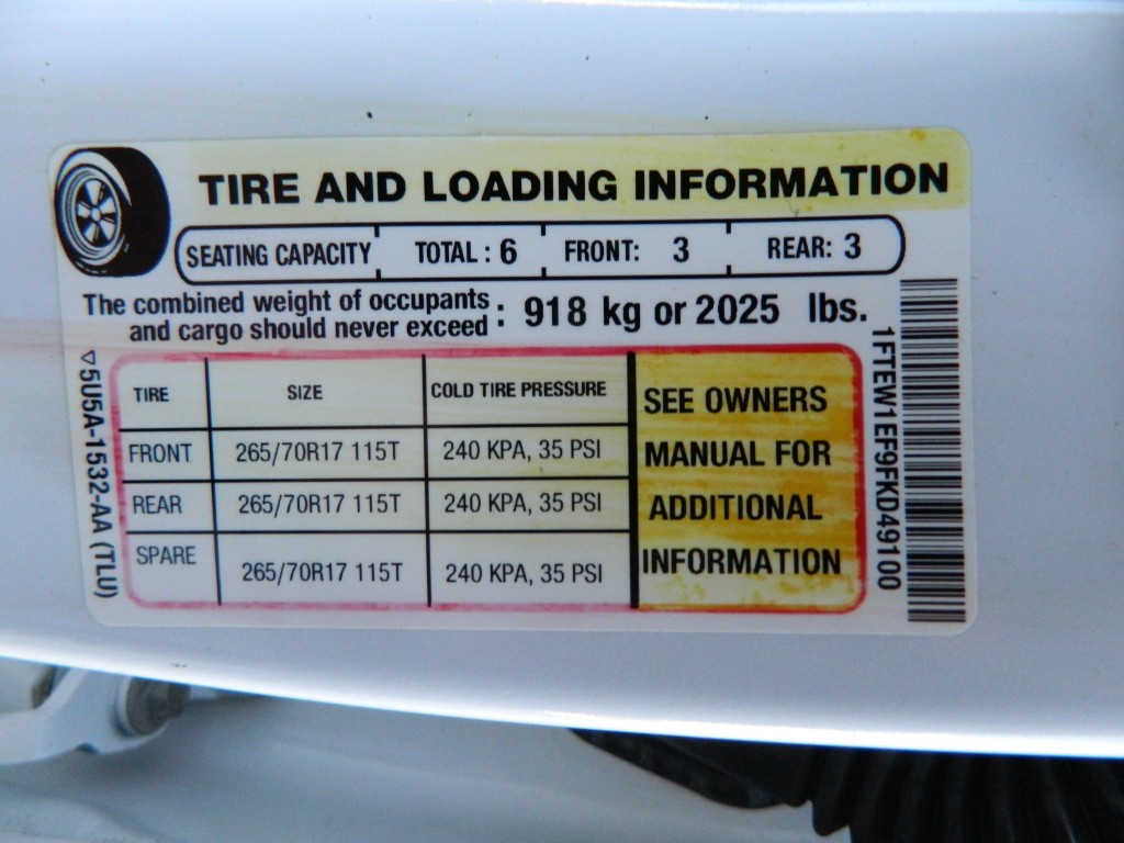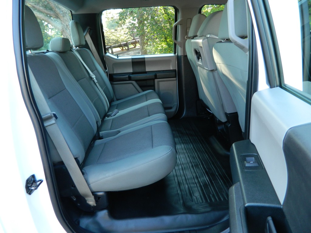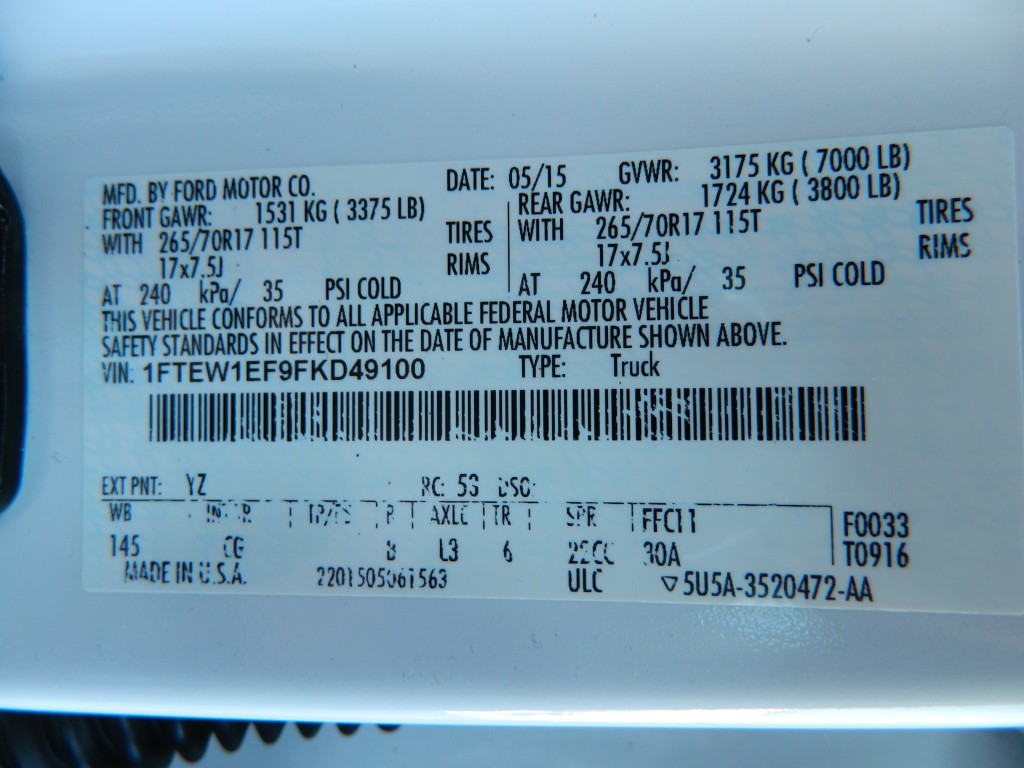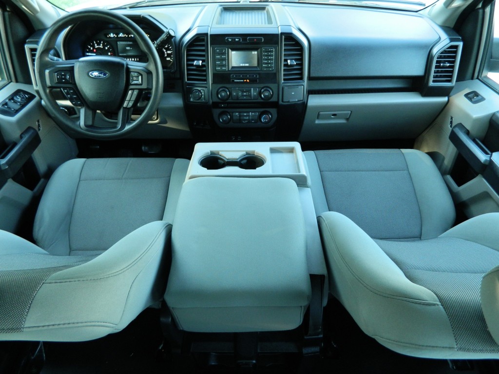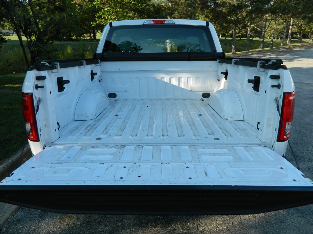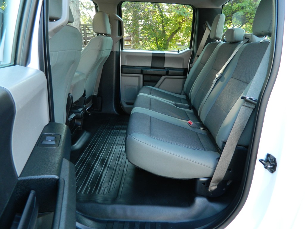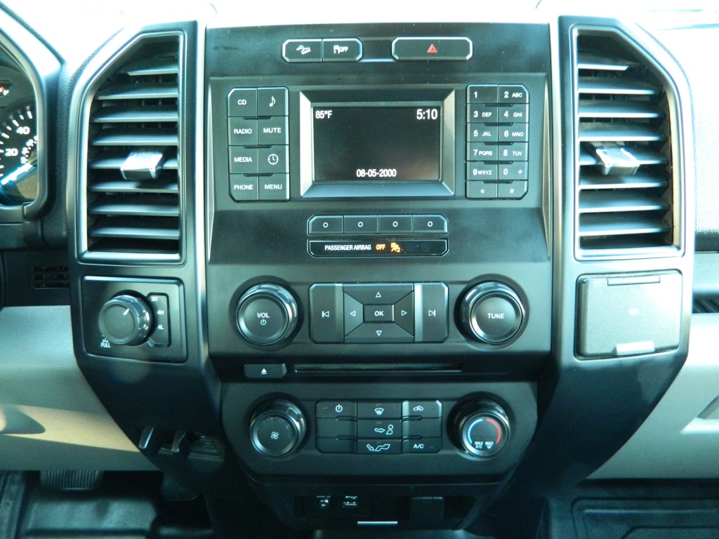 2015 Ford F-150 XL Crew Cab with 4-wheel drive, 7000# GVWR and the Trailer Tow Package, a very nice one-owner corporate truck. It has the 5.0L Flex Fuel V8 engine with 385hp and 387ft lbs of torque, electronic 6-speed automatic transmission with tow/haul, sport and manual shift modes, 4-wheel drive with traction control, a 3.31 electronic locking rear axle, steel wheels and a new set of tires. White with black trim, 5.5-ft bed with a soft cover ("Truxport" by Truxedo), rear receiver, front tow hooks and a built-in trailer brake controller. Interior has black vinyl flooring, gray cloth seats, seating for six, power windows, door locks and mirrors, good heat and cold A/C, sound system with AM/FM/CD/USB/AUX/BT inputs, SYNC, tilt and telescopic steering column, steering wheel controls, cruise control and more.