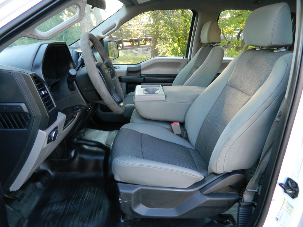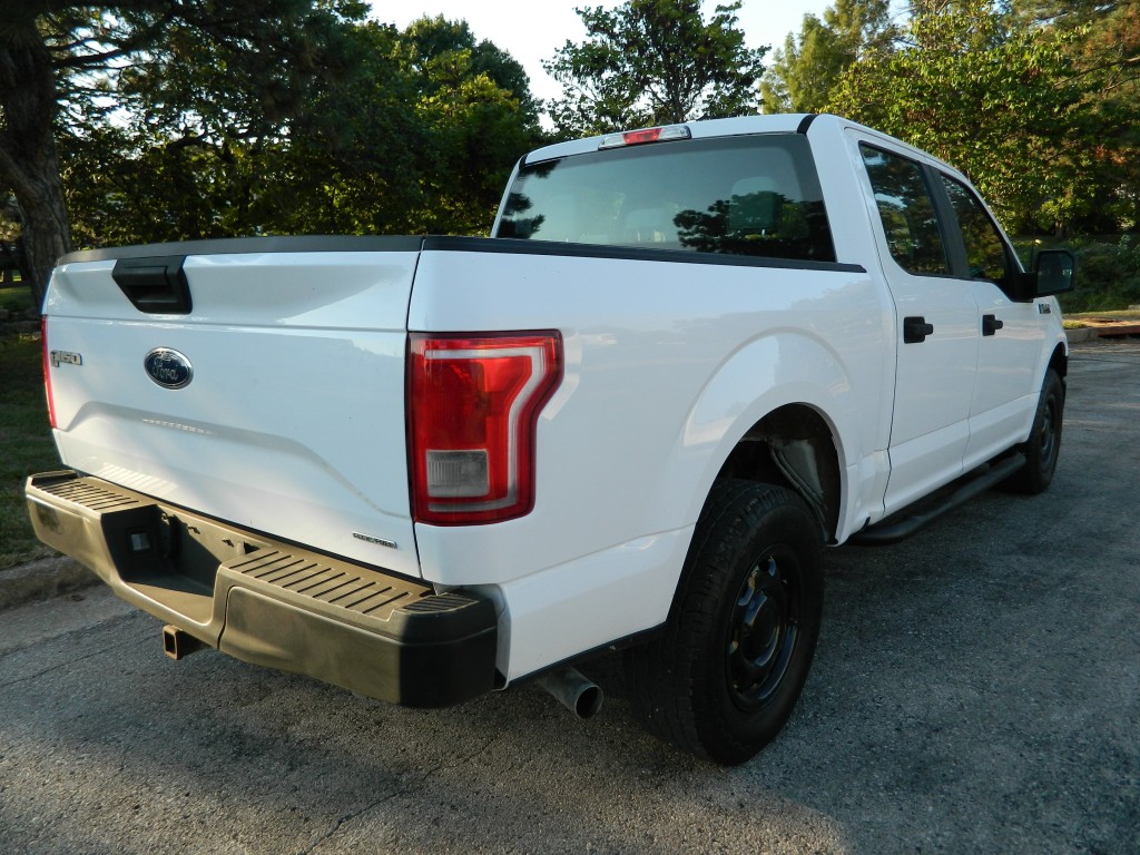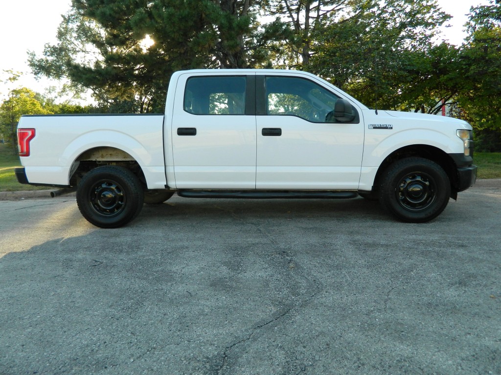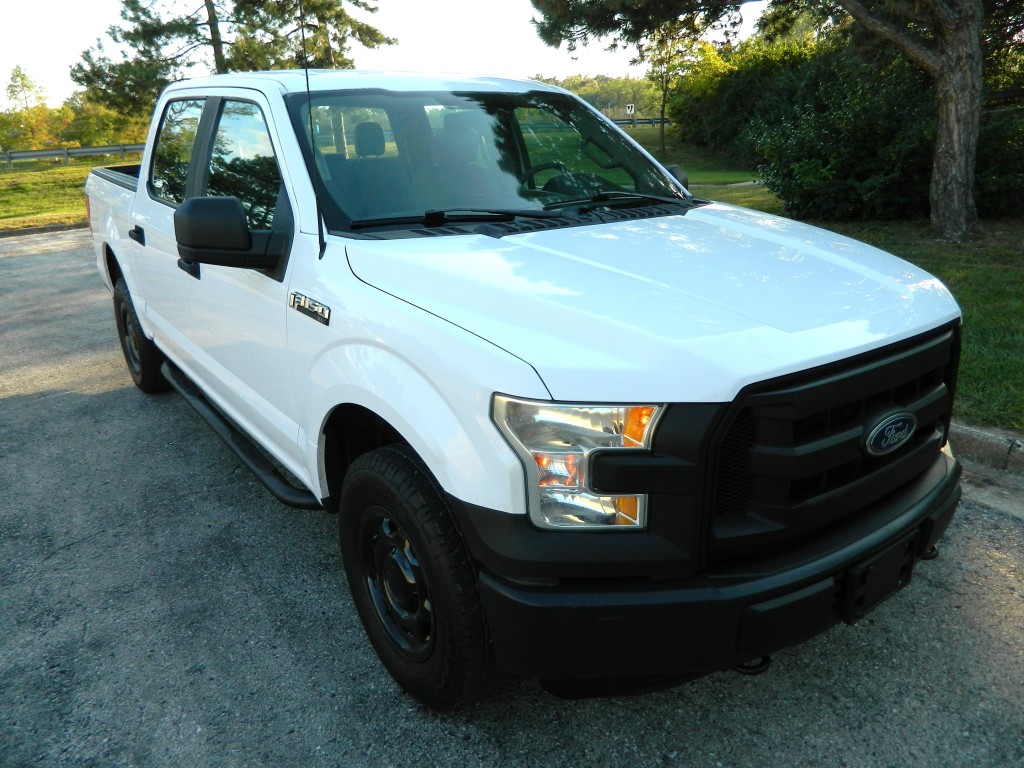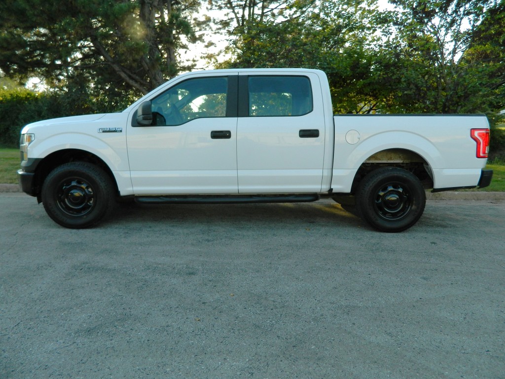 2015 Ford F-150 XL Crew Cab with 4-wheel drive, new tires and the Trailer Tow Package. This is a very well-serviced one-owner truck with no accidents as reported by Carfax. It has the 5.0L Flex Fuel V8 engine with 385hp and 387ft lbs of torque, electronic 6-speed automatic transmission with tow/haul, sport and manual shift modes, 4-wheel drive with traction control, a 3.31 electronic locking rear axle, steel wheels and a new set of tires. White with black trim, 5.5-ft bed, bed liner, rear receiver, front tow hooks and a built-in trailer brake controller. Interior has black vinyl flooring, gray cloth seats, seating for six, power windows, door locks and mirrors, good heat and cold A/C, sound system with AM/FM/CD/USB/AUX/BT inputs, SYNC, tilt and telescopic steering column, steering wheel controls, cruise control and more.