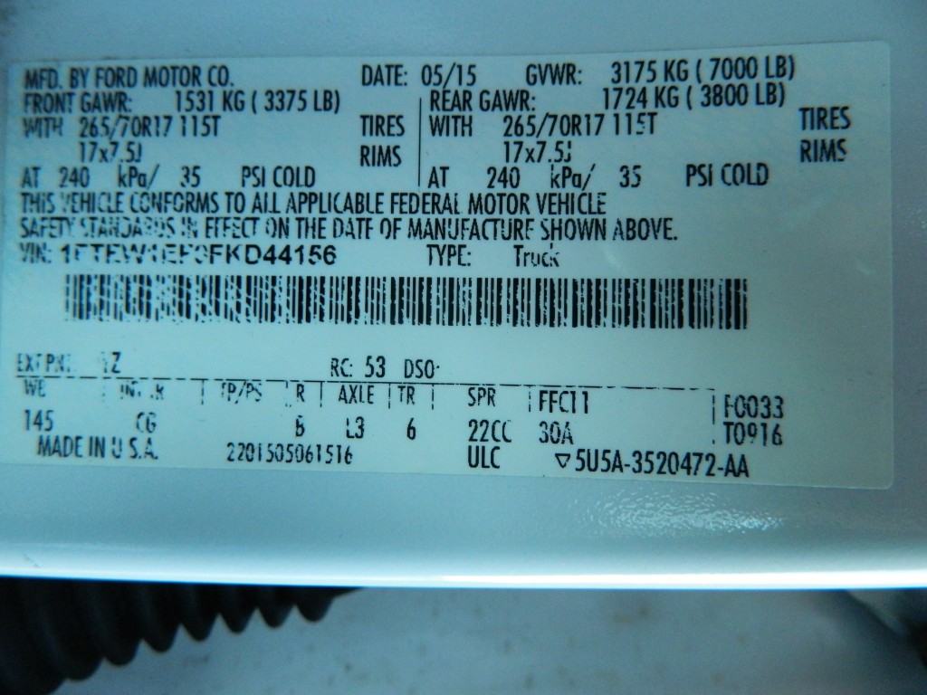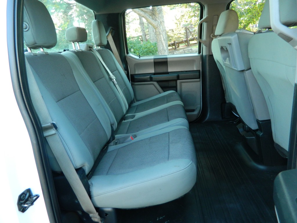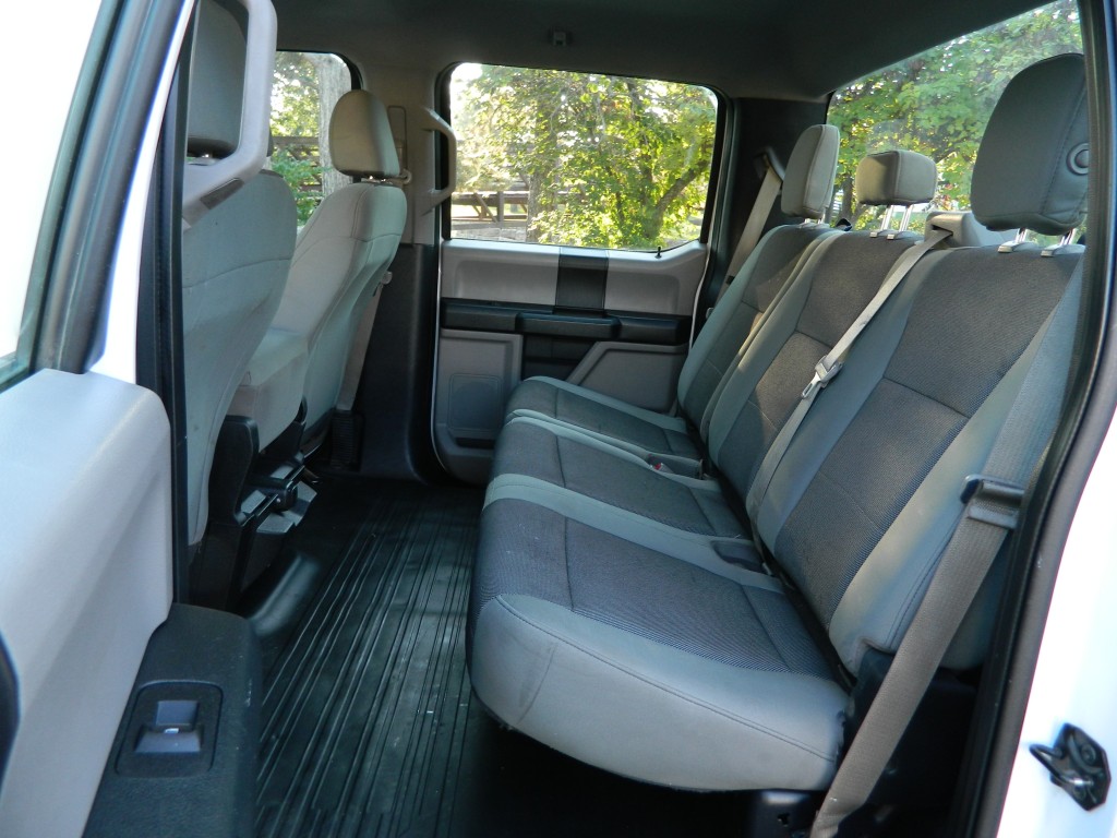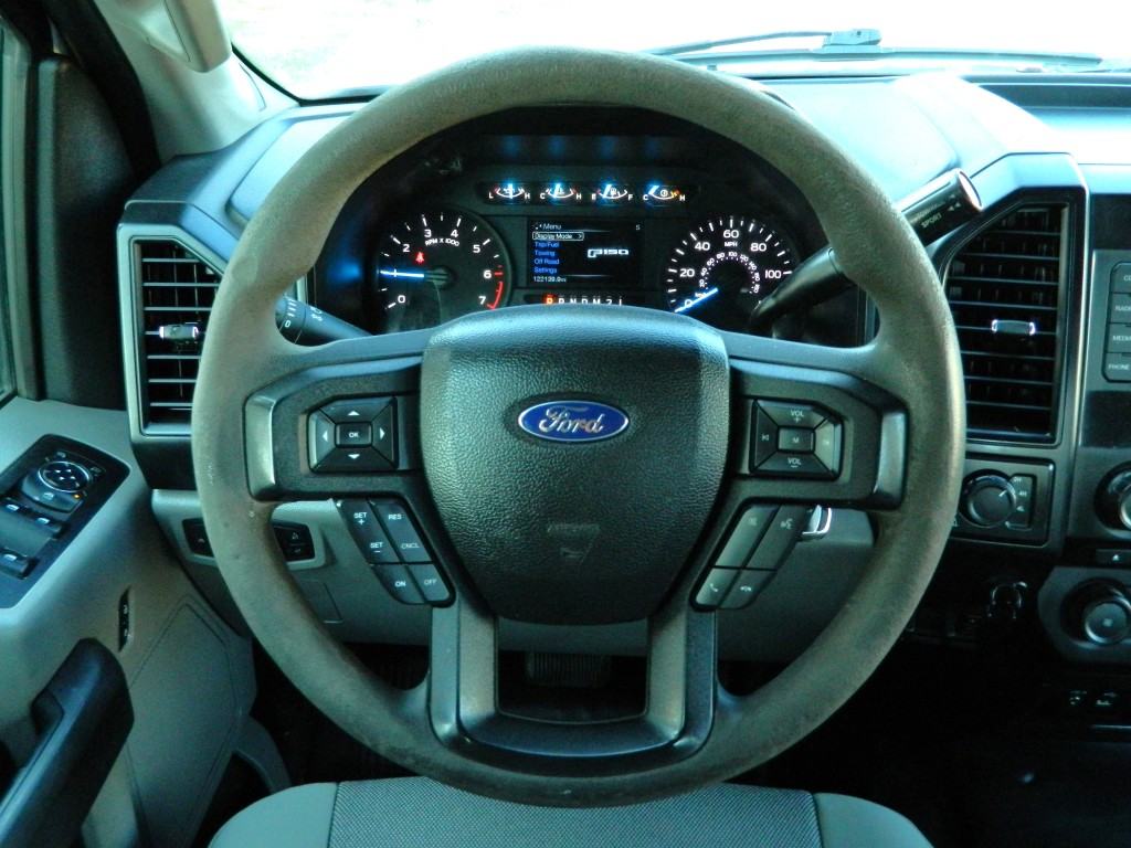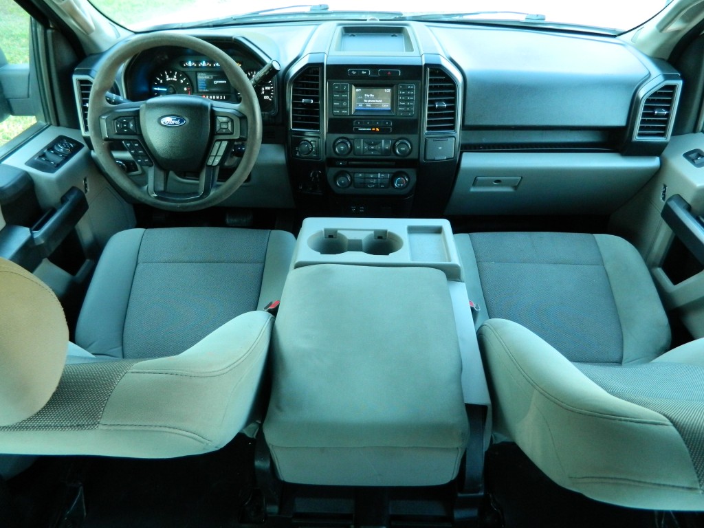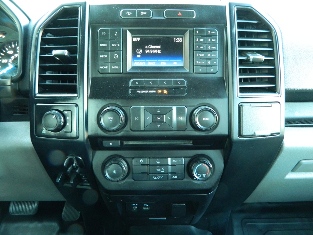 2015 Ford F-150 XL Crew Cab with 4-wheel drive, new tires and the Trailer Tow Package. This is a very well-serviced one-owner truck with no accidents as reported by Carfax. It has the 5.0L Flex Fuel V8 engine with 385hp and 387ft lbs of torque, electronic 6-speed automatic transmission with tow/haul, sport and manual shift modes, 4-wheel drive with traction control, a 3.31 electronic locking rear axle, steel wheels and a new set of tires. White with black trim, 5.5-ft bed, bed liner, rear receiver, front tow hooks and a built-in trailer brake controller. Interior has black vinyl flooring, gray cloth seats, seating for six, power windows, door locks and mirrors, good heat and cold A/C, sound system with AM/FM/CD/USB/AUX/BT inputs, SYNC, tilt and telescopic steering column, steering wheel controls, cruise control and more.