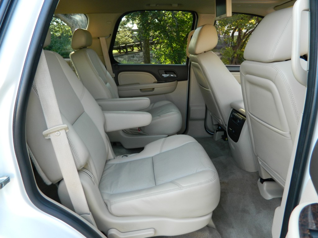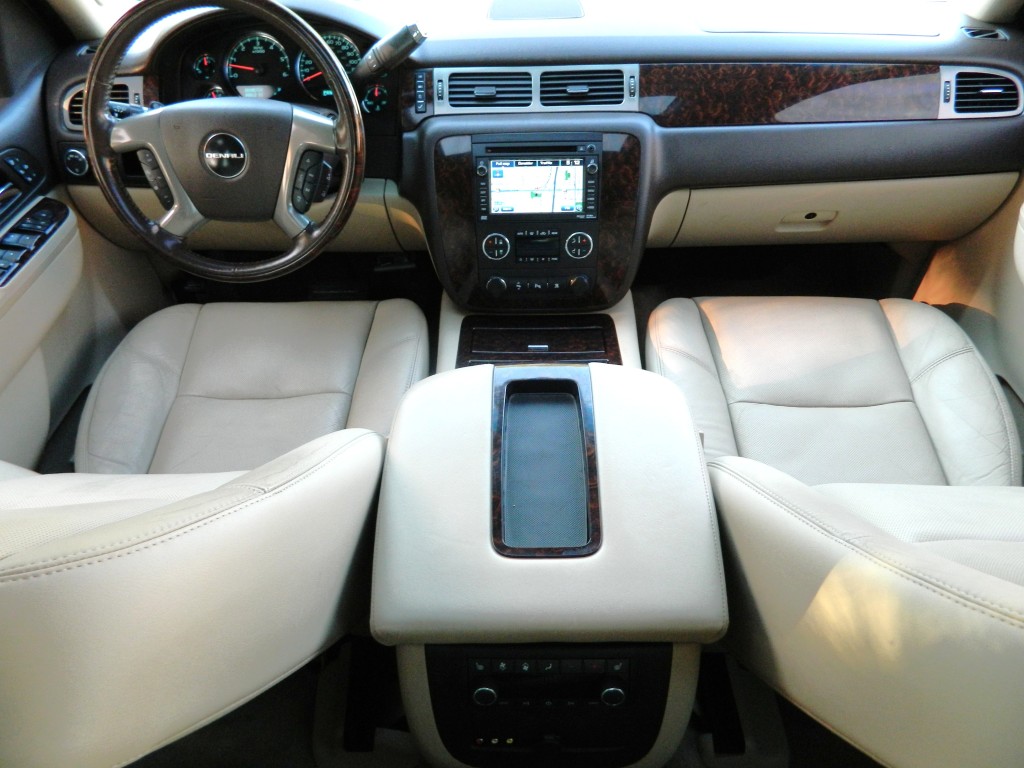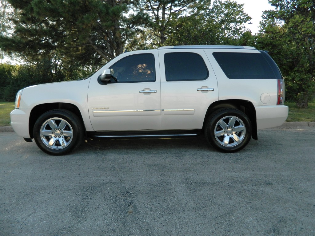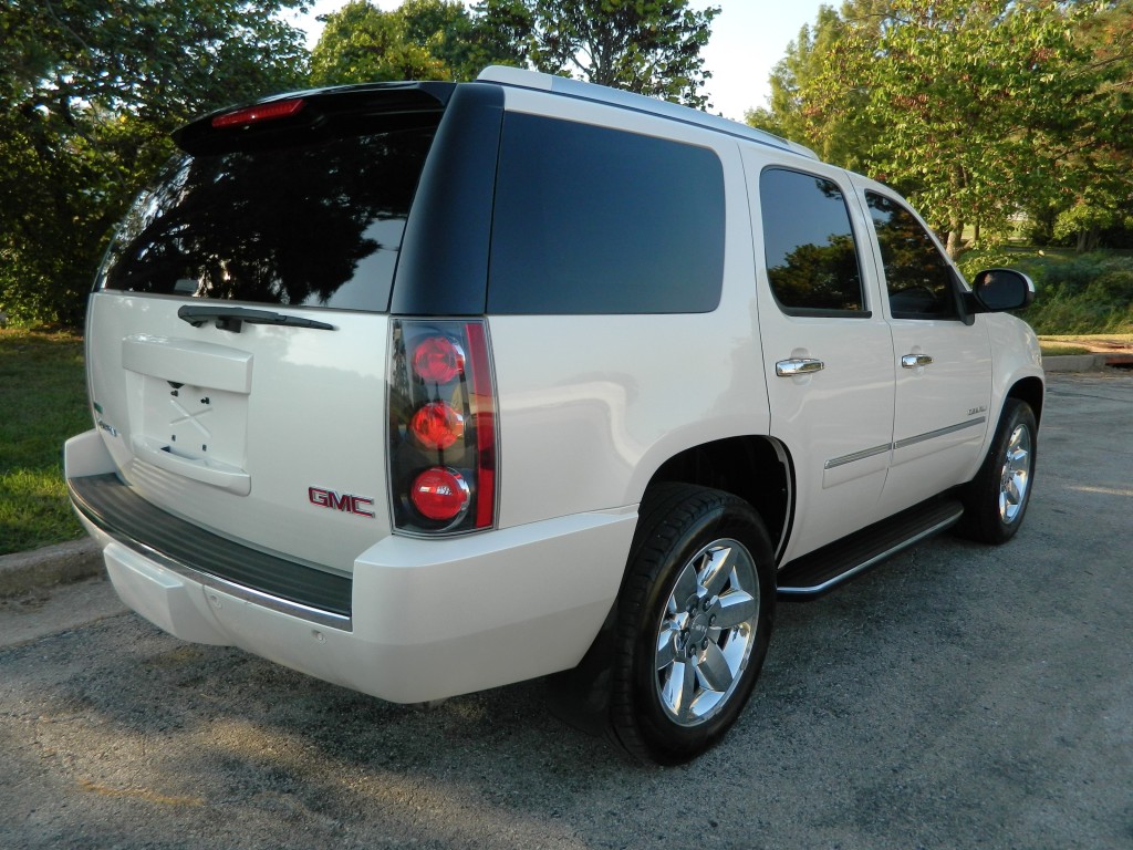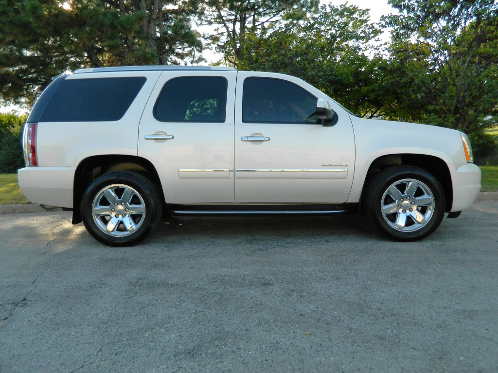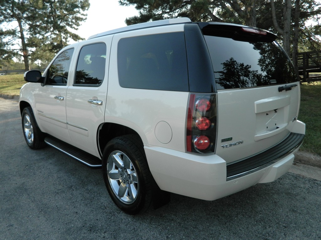 2010 GMC Yukon Denali, a nearly-flawless 7-passenger SUV all-wheel drive with no accidents as reported by Carfax. It has the 6.2L V8 engine with 403hp and 417ft lbs of torque, 6-speed automatic transmission with tow/haul and manual shift modes, All-Wheel Drive with traction control, alloy wheels and an excellent set of tires. White with chrome trim, fog lights, running boards, roof rails with cross bars, moon roof, parking sensors, rear view camera and a rear receiver. Interior color is light tan, it has carpet, leather seats, seating for seven, powered, heated and cooled front seats, heated second-row seats, power windows, door locks and mirrors, multi-zone climate control, Panasonic DVD screen for the rear seats with rear console inputs and controls, BOSE premium sound system with AM/FM/SAT/CD/AUX inputs, voice-activated systems, cell phone pairing, Navigation, power adjustable foot pedals, power tilt and telescopic steering column, steering wheel controls, cruise control and a whole lot more.