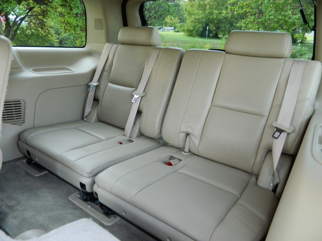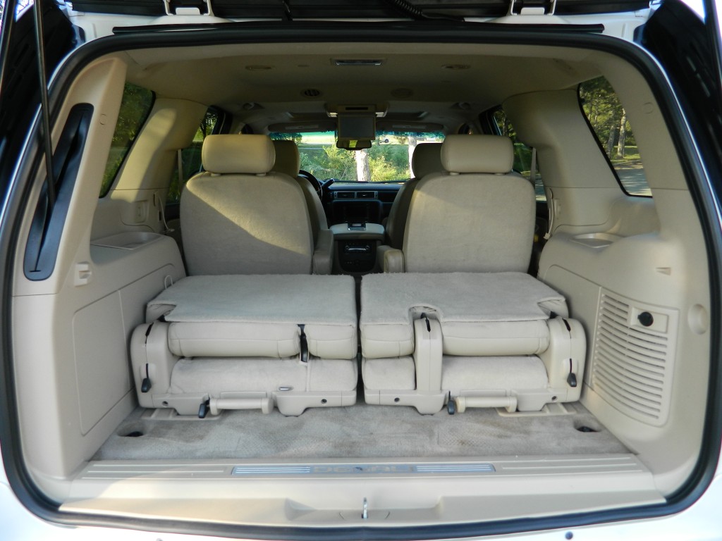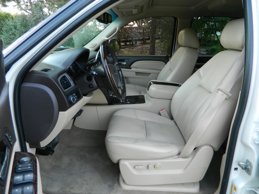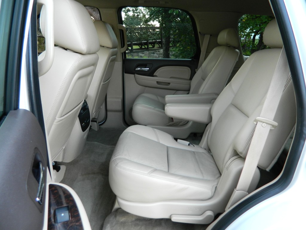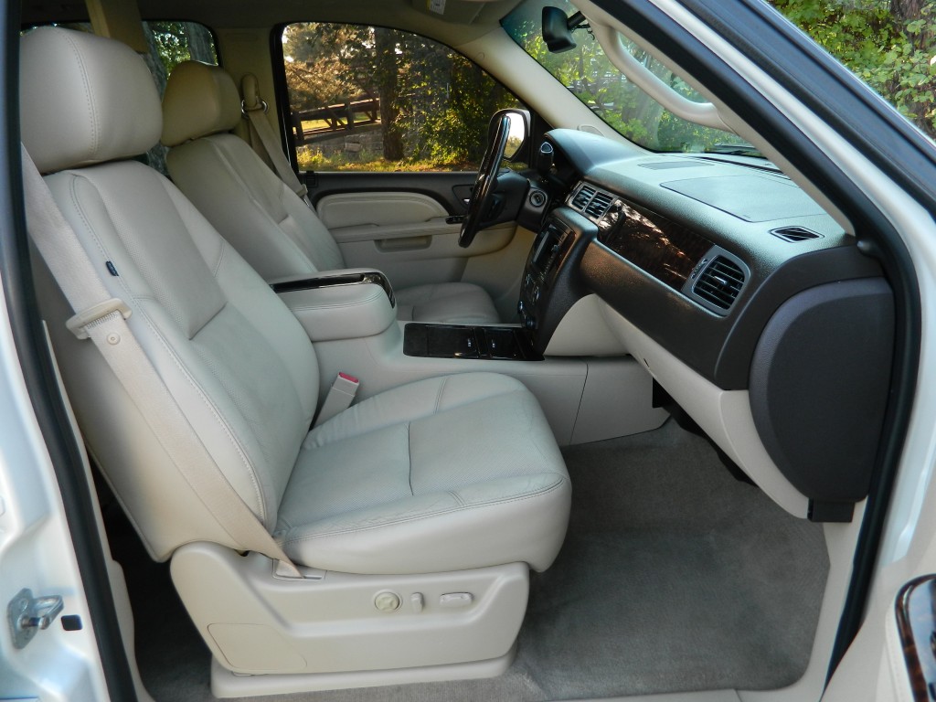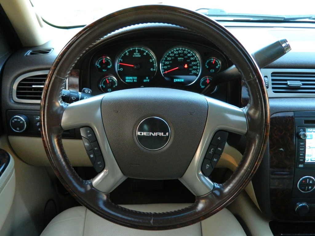 2010 GMC Yukon Denali, a nearly-flawless 7-passenger SUV all-wheel drive with no accidents as reported by Carfax. It has the 6.2L V8 engine with 403hp and 417ft lbs of torque, 6-speed automatic transmission with tow/haul and manual shift modes, All-Wheel Drive with traction control, alloy wheels and an excellent set of tires. White with chrome trim, fog lights, running boards, roof rails with cross bars, moon roof, parking sensors, rear view camera and a rear receiver. Interior color is light tan, it has carpet, leather seats, seating for seven, powered, heated and cooled front seats, heated second-row seats, power windows, door locks and mirrors, multi-zone climate control, Panasonic DVD screen for the rear seats with rear console inputs and controls, BOSE premium sound system with AM/FM/SAT/CD/AUX inputs, voice-activated systems, cell phone pairing, Navigation, power adjustable foot pedals, power tilt and telescopic steering column, steering wheel controls, cruise control and a whole lot more.
