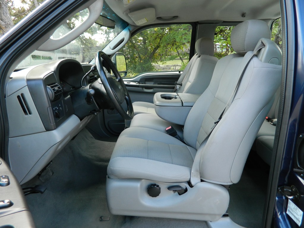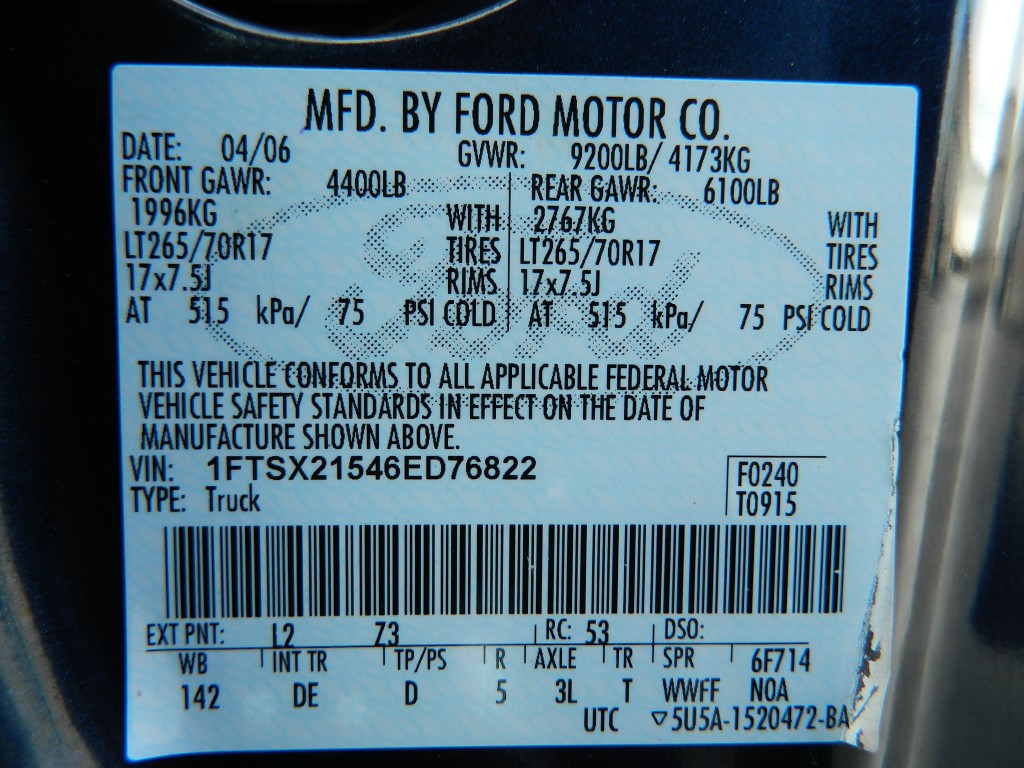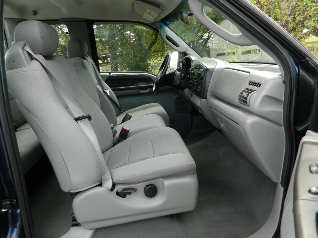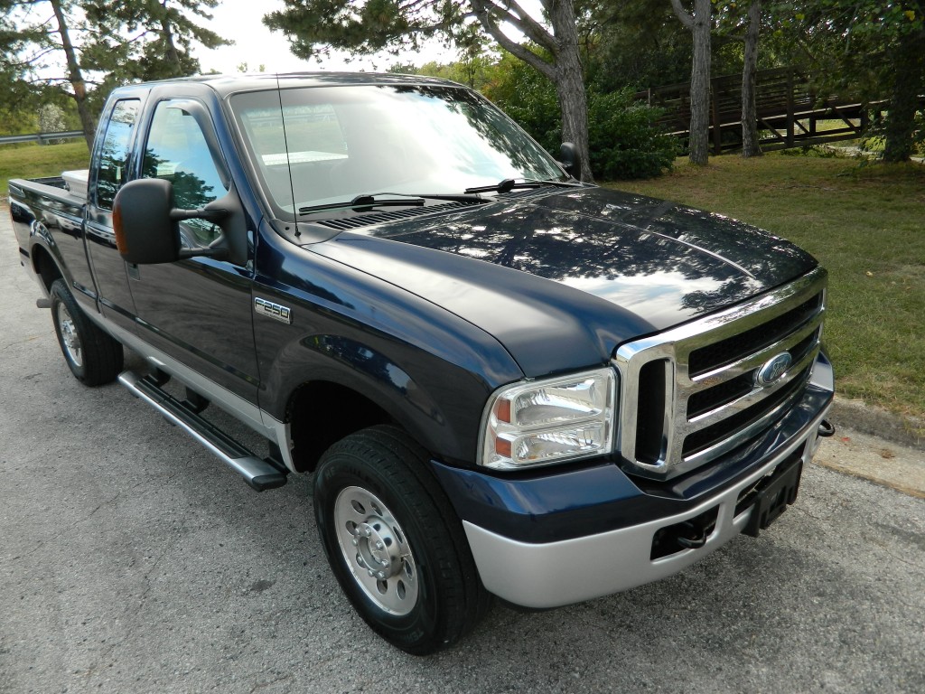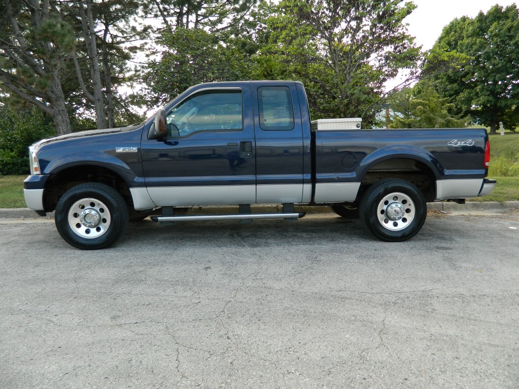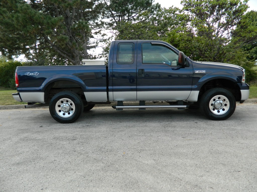 2006 Ford F-250 XLT SuperCab (Extended Cab) with 4-wheel drive. This is an exceptionally nice one-owner truck with no accidents as reported by Carfax. It has the Triton 5.4L V8 engine with 300hp and 365ft lbs of torque, a 5-speed automatic transmission (5R110W) with tow/haul mode, 4-wheel drive, a 3.73 Limited Slip rear axle, aluminum alloy wheels and a new set of tires. Blue with gray accent stripe, running boards, 6.5-ft bed with tool box, chrome and black trim, front tow hooks, tow mirrors, rear receiver and a built-in trailer brake controller. Interior has gray carpet, gray cloth seats, seating for six, power windows, door locks and mirrors, good heat and cold A/C, sound system with AM/FM/CD inputs, tilt steering, cruise control and more.