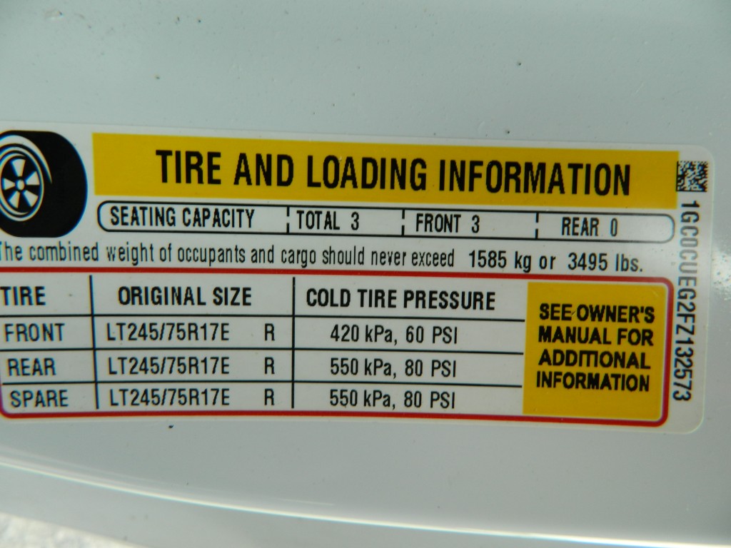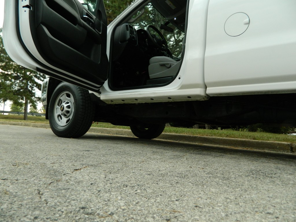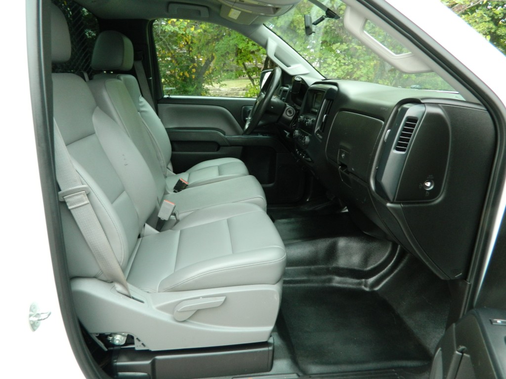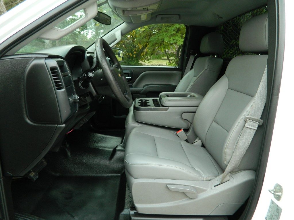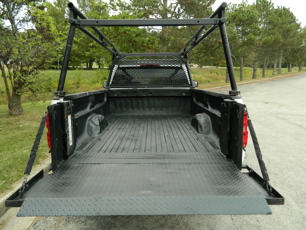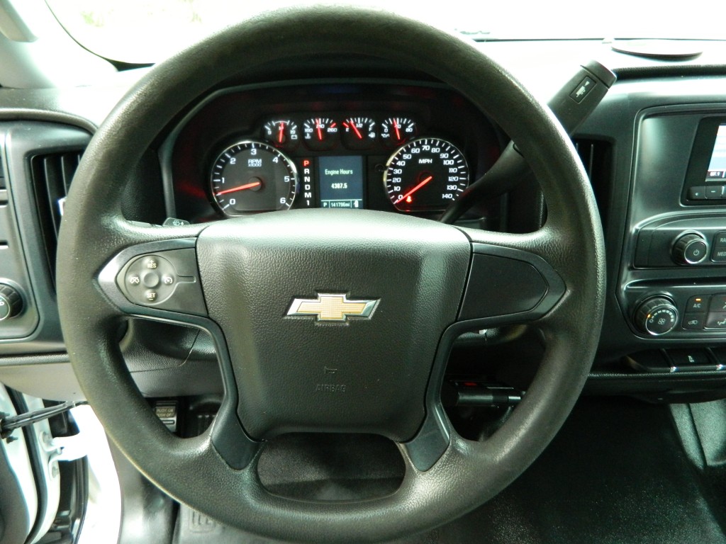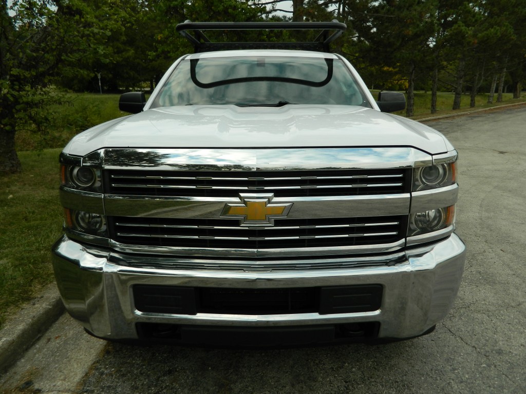 2015 Chevrolet Silverado 2500 Regular Cab Long Bed with Rear Wheel Drive, overhead pipe rack and a "Tommy Gate" hydraulic lift gate (1,300# capacity). This is a one-owner corporate truck with no accidents as reported by Carfax. It has the Vortec 6.0L Flex Fuel V8 engine with 360hp and 380ft lbs of torque, 6-speed automatic transmission (6L-90) with tow/haul and manual shift modes, Rear Wheel drive with traction control, a 4.10 rear axle, steel wheels and a new set of tires. White with chrome and black trim, chrome bumper, 8-foot bed with spray-in bed liner, overhead pipe rack, headache rack, 1,300# capacity "Tommy Gate" hydraulic lift gate, rear receiver, front tow hooks and an after-market trailer brake controller (Reese "Brakeman Digital"). Interior has black vinyl flooring, gray vinyl seats, seating for three, power windows, door locks and mirrors, good heat and cold A/C, sound system with AM/FM/SD/USB/AUX inputs, tilt steering, cruise control and more.