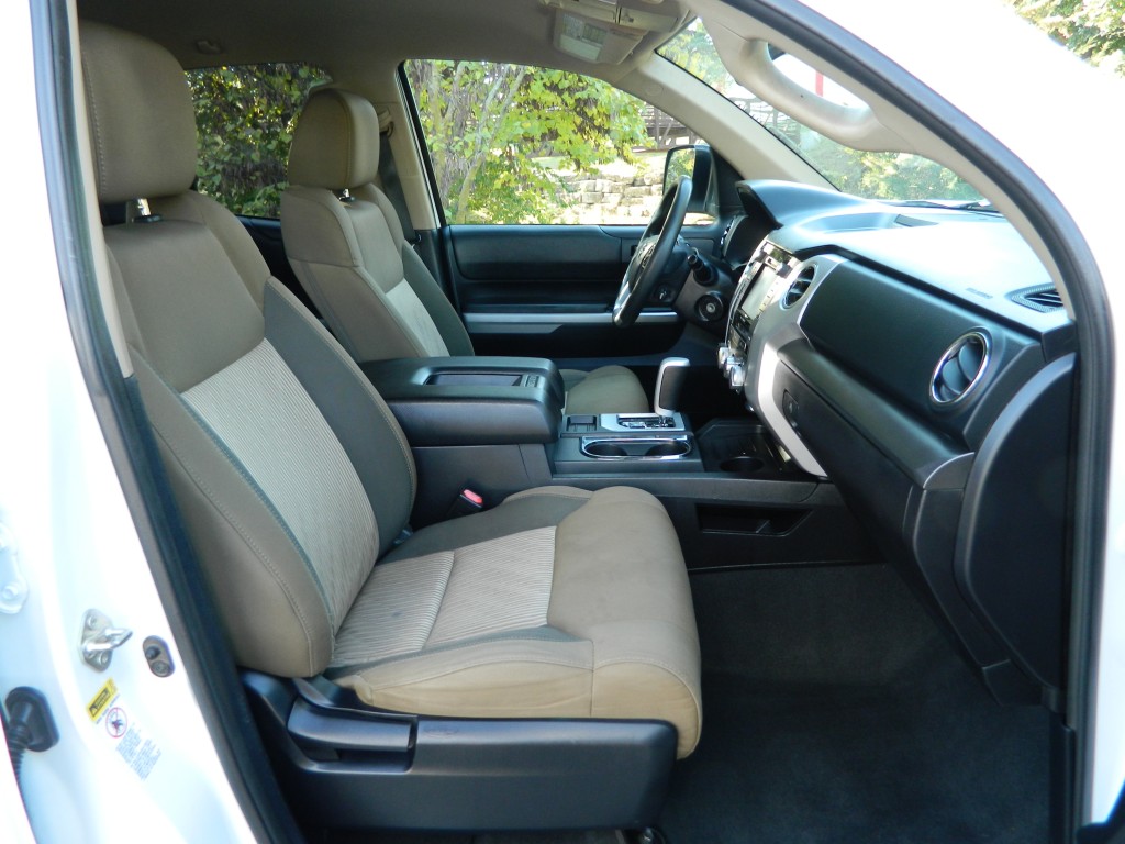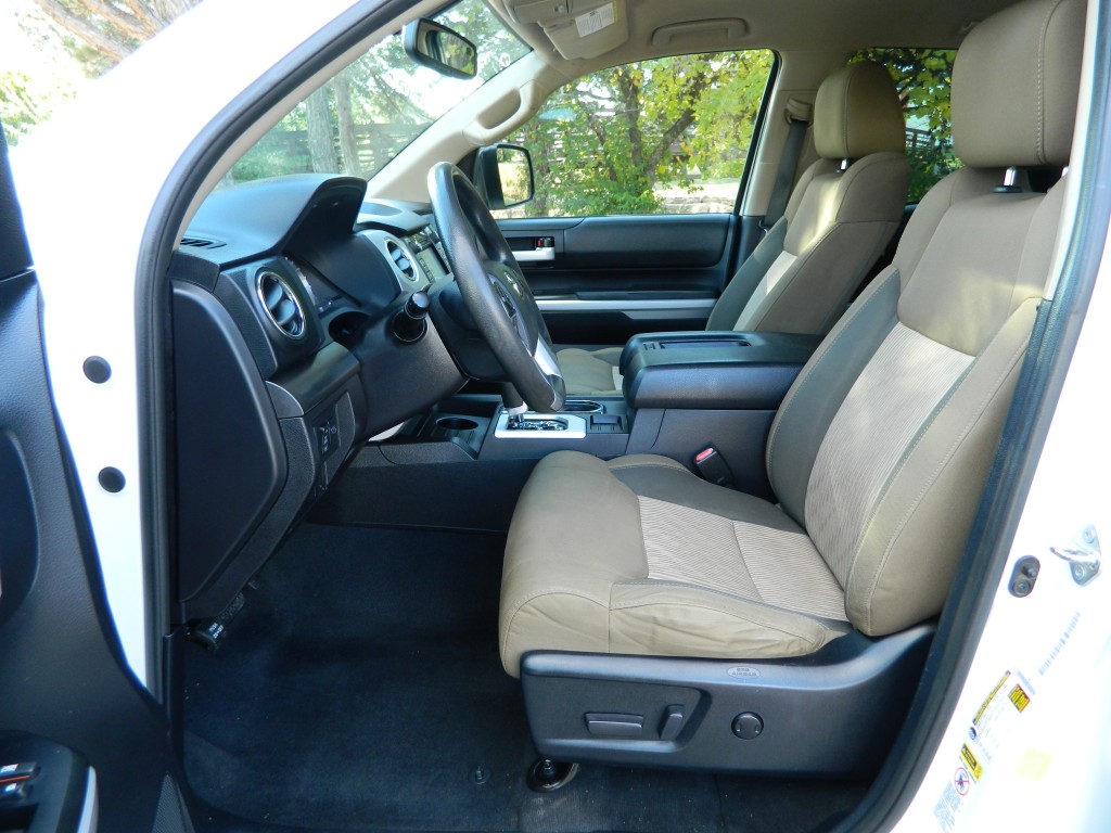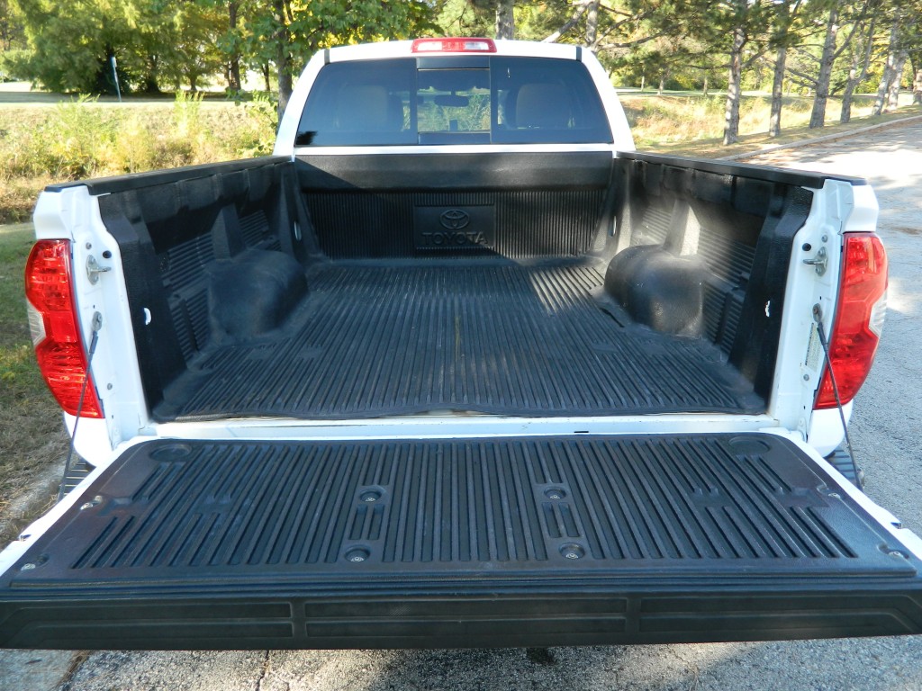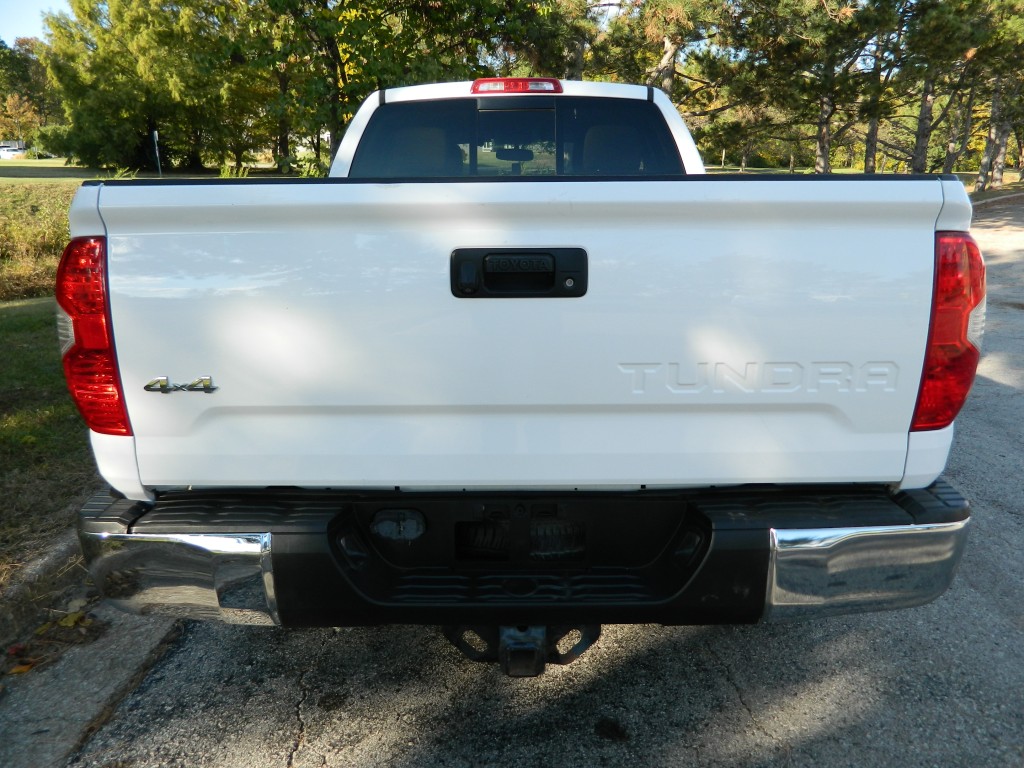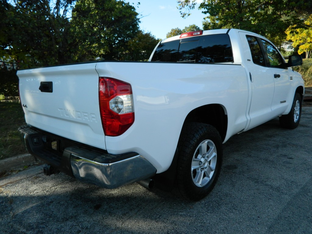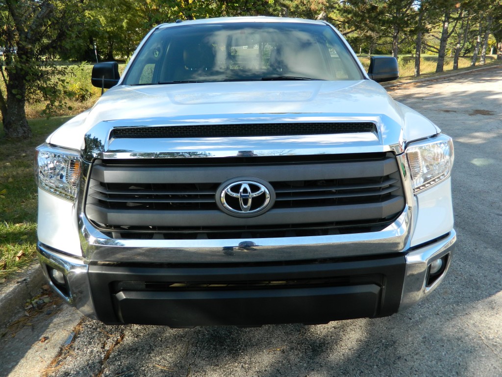 2014 Toyota Tundra SR5 Double Cab with 4-wheel drive.  This is a very well-service Tundra with low miles, very clean and no rust.  It has the 5.7L Flex Fuel V8 engine with 381hp and 401ft lbs of torque, automatic transmission with tow/haul and manual shift modes, 4-wheel drive with traction control, alloy wheels and a new set of tires.  White with chrome trim, fog lights, 6.5-ft bed with bed liner, rear view camera, rear receiver, front tow hooks.  Interior has beige carpet and cloth seats, seating for five, powered driver's seat, power windows, door locks and mirrors, good heat and cold A/C, sound system with AM/FM/SAT/CD/USB/AUX/BT inputs, tilt and telescopic steering column, steering wheel controls, cruise control and more.