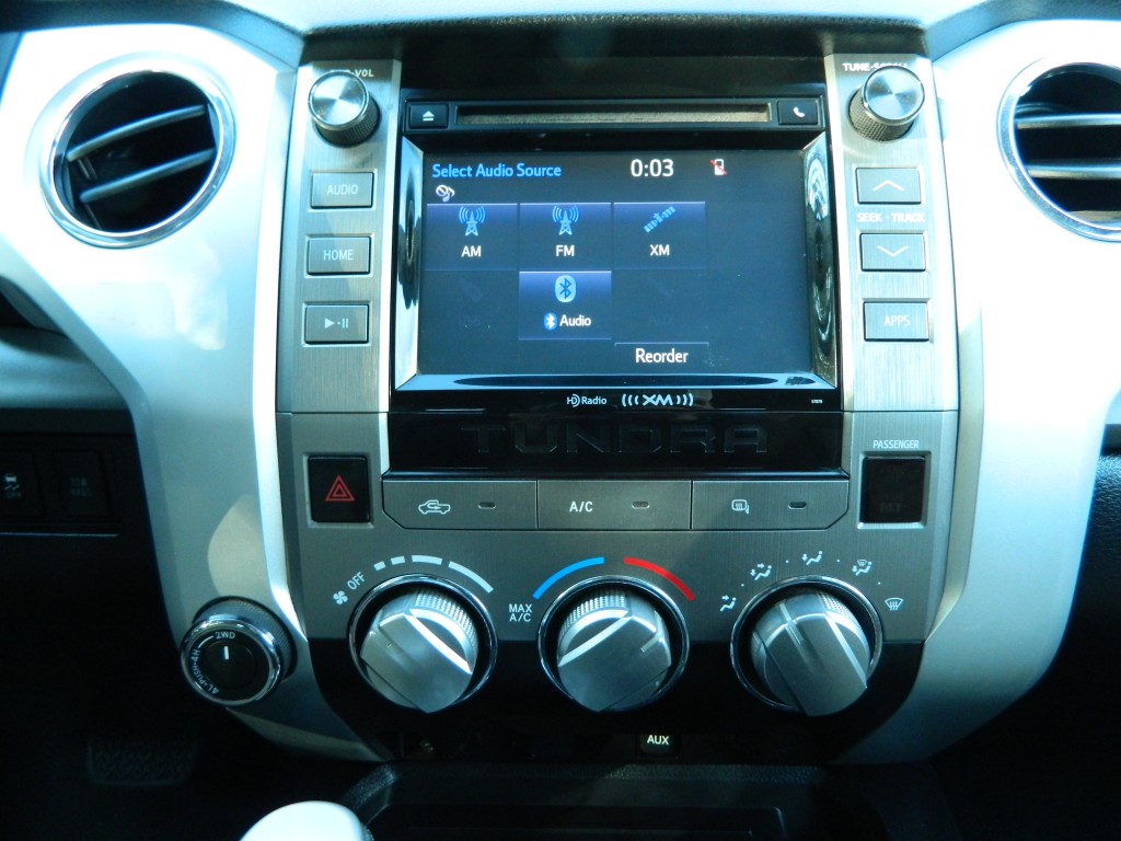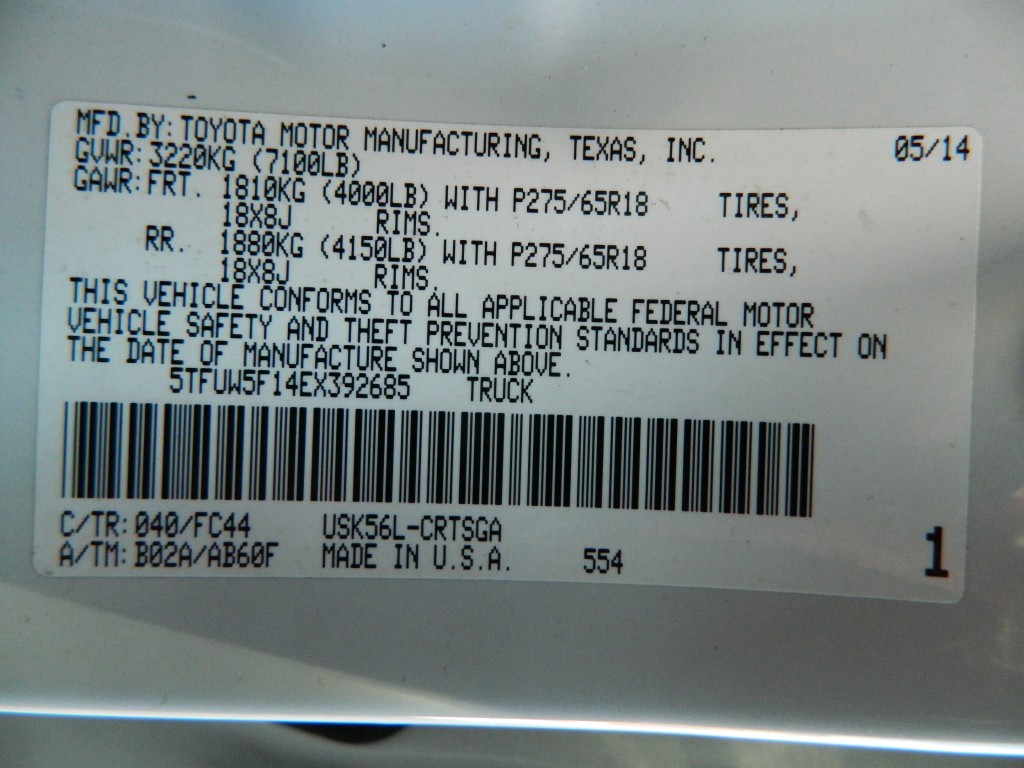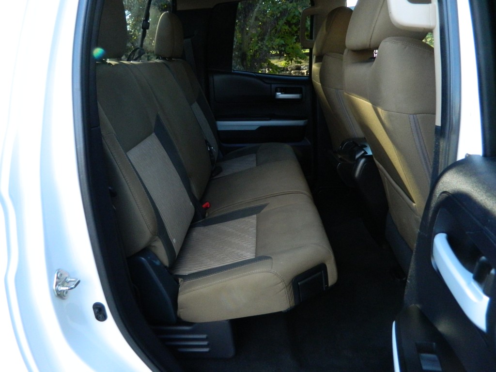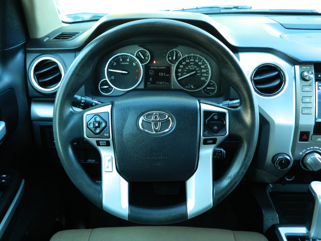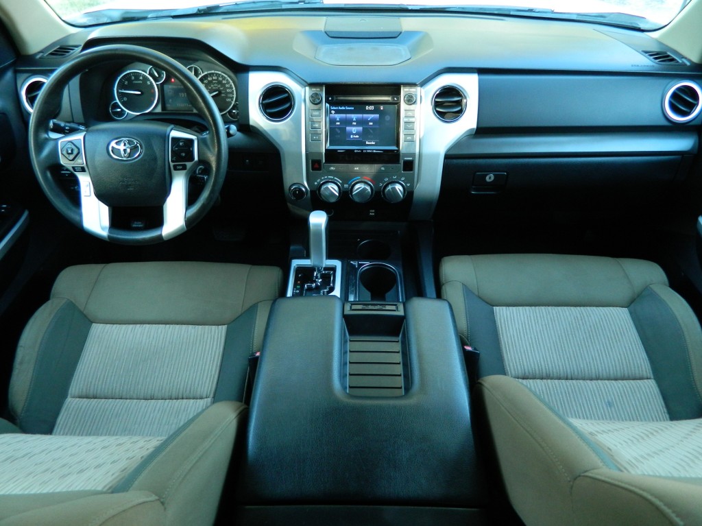 2014 Toyota Tundra SR5 Double Cab with 4-wheel drive.  This is a very well-service Tundra with low miles, very clean and no rust.  It has the 5.7L Flex Fuel V8 engine with 381hp and 401ft lbs of torque, automatic transmission with tow/haul and manual shift modes, 4-wheel drive with traction control, alloy wheels and a new set of tires.  White with chrome trim, fog lights, 6.5-ft bed with bed liner, rear view camera, rear receiver, front tow hooks.  Interior has beige carpet and cloth seats, seating for five, powered driver's seat, power windows, door locks and mirrors, good heat and cold A/C, sound system with AM/FM/SAT/CD/USB/AUX/BT inputs, tilt and telescopic steering column, steering wheel controls, cruise control and more.