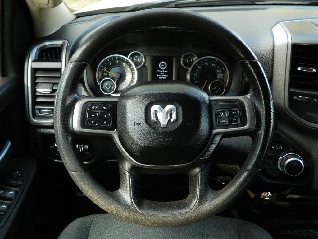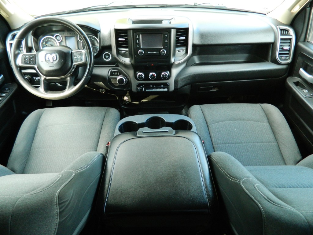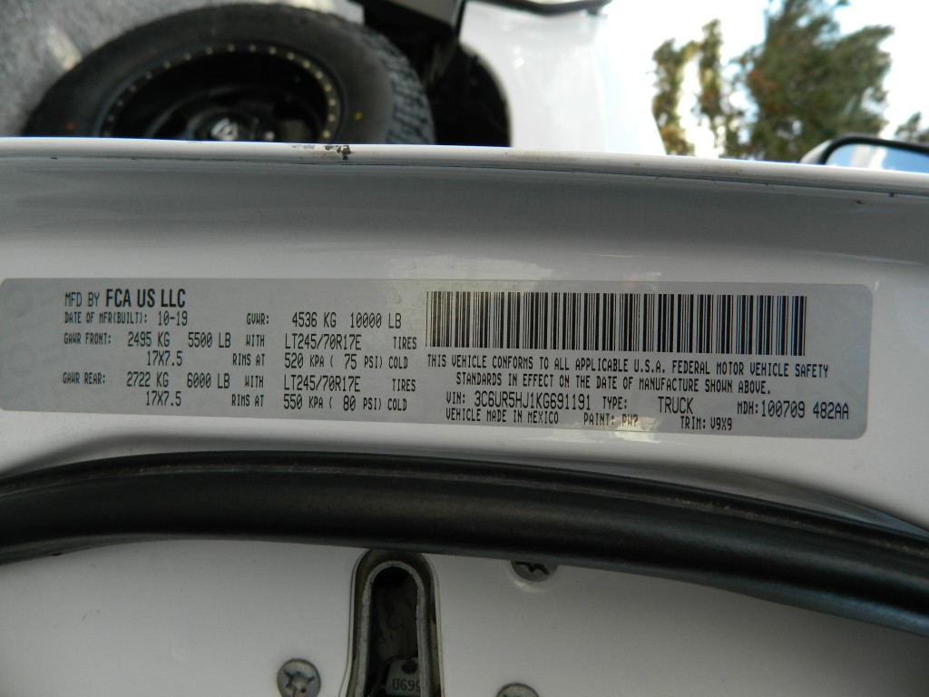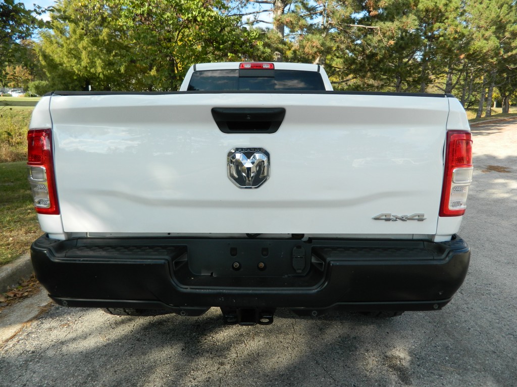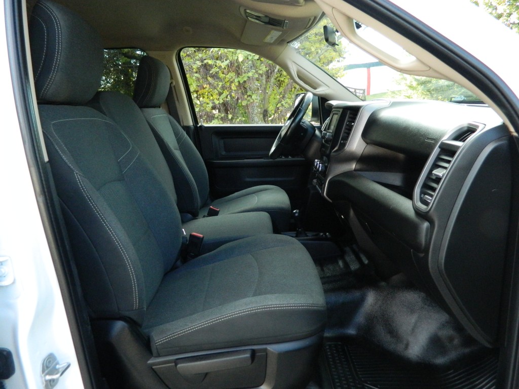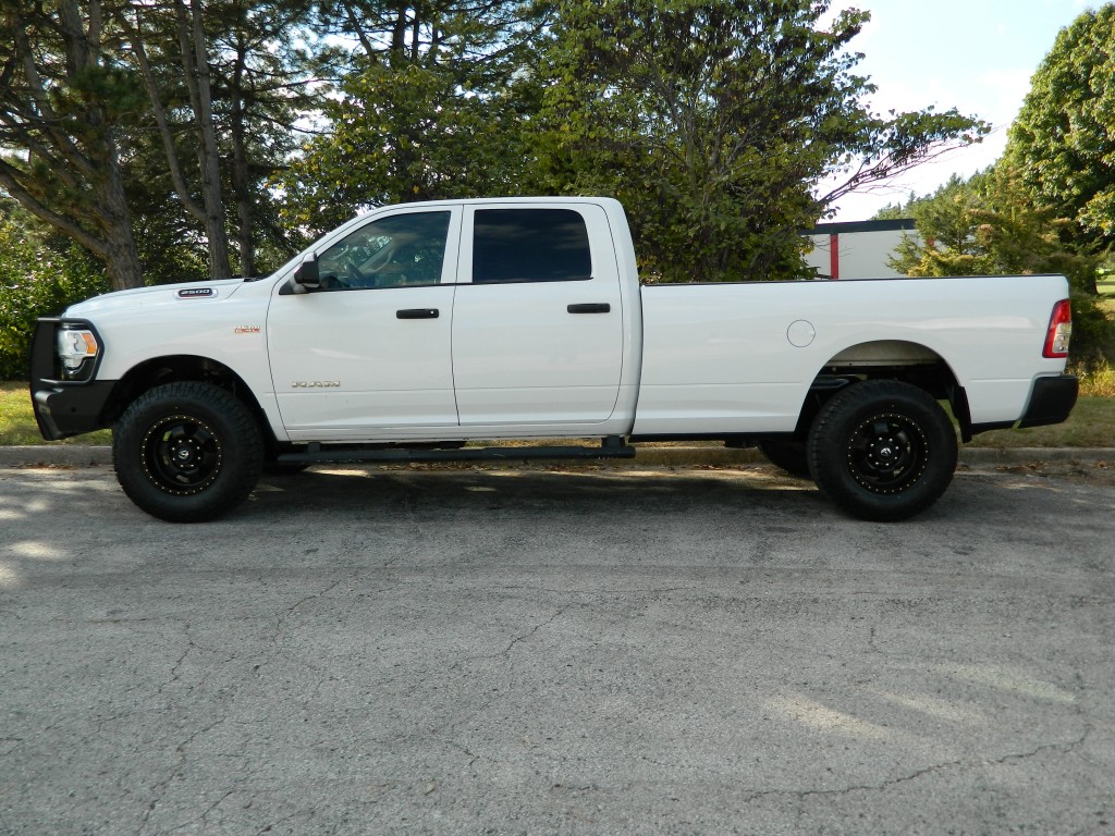 2019 Ram 2500 Tradesman Crew Cab with 4-wheel drive, an 8-foot bed and no accidents reported by Carfax.  It has the 6.4L V8 Hemi engine with 410hp and 429ft lbs of torque, 8-speed automatic transmission (8HP75-LCV) with tow/haul mode, 4-wheel drive with traction control, a 4.10 anti-spin rear axle, custom alloy wheels by "Fuel" and a NEW set of tires (LT 285/75R18).  White with black trim, heavy-duty cattle guard with integrated bumper, running boards, 8-foot bed with bed liner, goose neck ball, rear view camera, rear receiver, tow mirrors, and a built-in trailer brake controller.  Interior has black vinyl flooring, black cloth seats, seating for six, power windows, door locks and mirrors, good heat and cold A/C, 5" display, sound system with AM/FM/USB/AUX/BT inputs, tilt steering, cruise control and more.