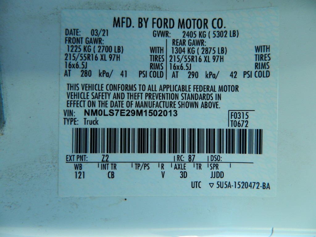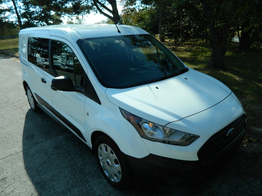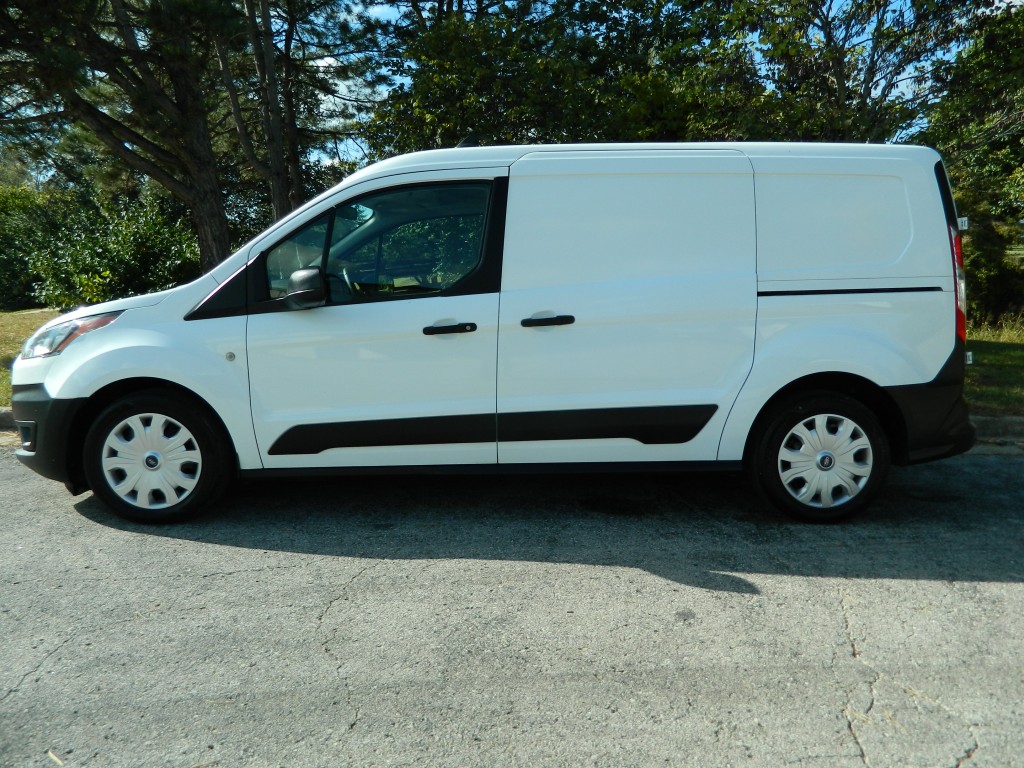 2021 Ford Transit Connect XL Cargo Van with the Long Wheel Base (121"), shelving and a rack.  This is a one-owner van with an excellent service history and no accidents as reported by Carfax.  It has the 2.0L I4 engine with 162hp and 144ft lbs of torque, 8-speed automatic transaxle with manual shift and multiple drive modes, front wheel drive with traction control, steel wheels and an excellent set of tires.  White with black trim, left (solid panel) and right (with glass) sliding side doors, hinged rear cargo doors with fixed glass, rear view camera and parking sensors.  Cargo area has black vinyl flooring, steel shelving and drawers and a welded-wire divider protecting the passengers.  Passenger area has black vinyl flooring, black cloth seats, seating for two, power windows, door locks and mirrors, good heat and cold A/C, sound system with AM/FM/USB/BT inputs, tilt and telescopic steering column, steering wheel controls, cruise control and more.