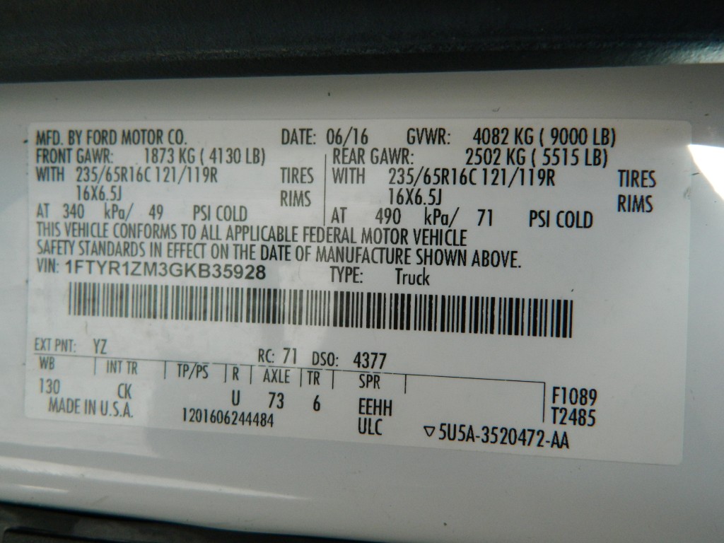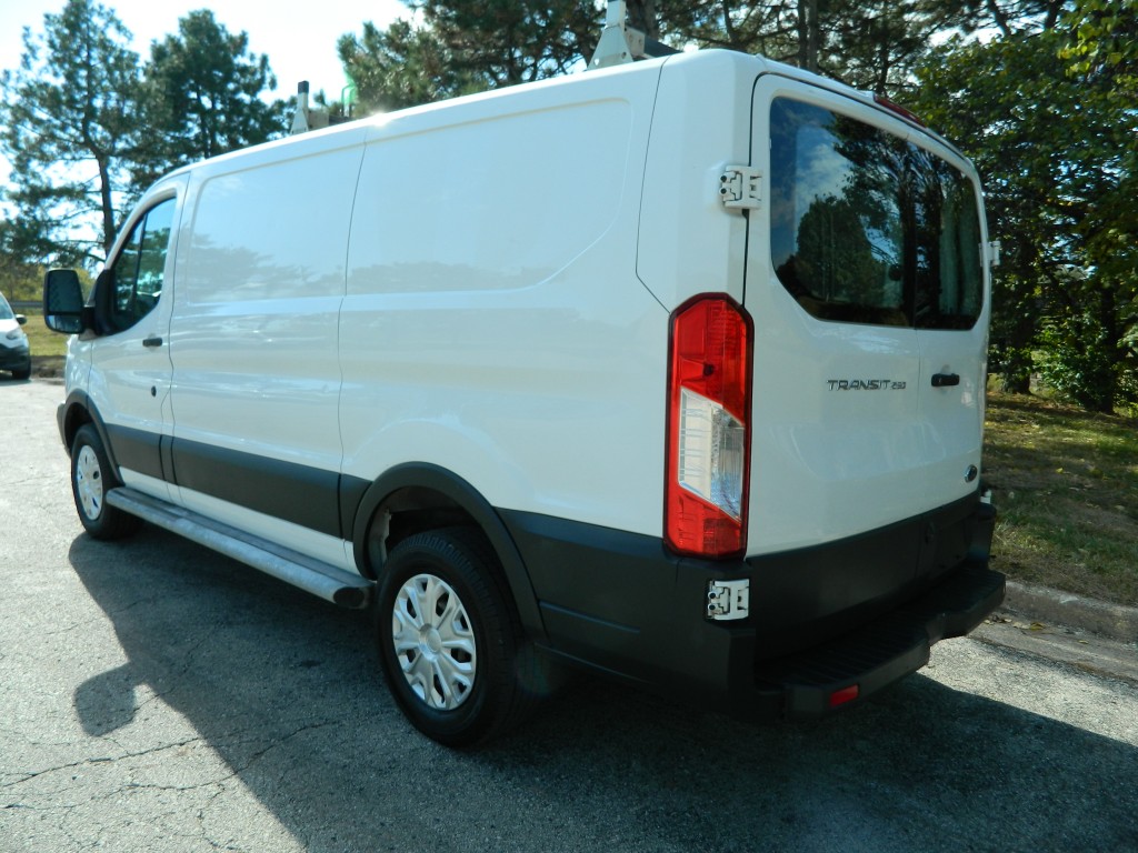2016 Ford Transit 250 Cargo Van, Low Roof, 130-inch wheel base, pipe rack, 9000# GVWR package.  A good work van with a good service history and no accidents as reported by Carfax.  It has the 3.7L Flex Fuel V6 engine with 275hp and 260ft lbs of torque, 6-speed automatic transmission with Select Shift, rear wheel drive with traction control, a 3.73 rear axle, steel wheels and a new set of tires.  White with black trim, running boards, hinged rear cargo doors with glass, sliding passenger side door with glass, solid panel on the driver's side, pipe rack on the roof and a rear view camera.  Cargo area has black vinyl flooring and a steel divider protecting the passengers.  Passenger area has black vinyl flooring, gray cloth seats, seating for tow, power windows, door locks and mirrors, good heat and cold A/C, sound system with AM/FM/AUX inputs, tilt and telescopic steering column, cruise control and more.