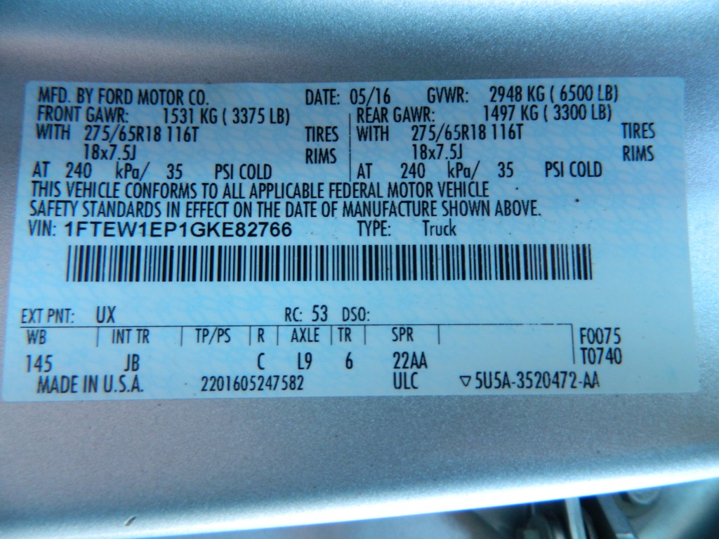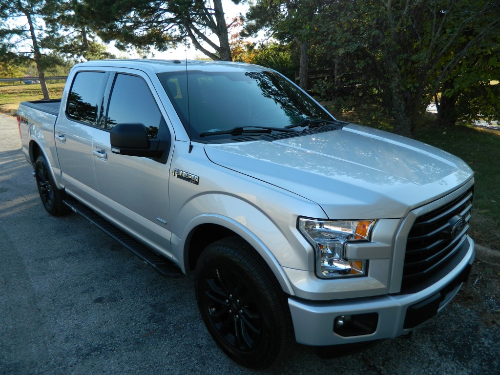 2016 Ford F-150 XLT Crew Cab with 4-wheel drive, FX4 Off Road package, XLT Sport package, remote start and the Trailer Tow Package.  This is a well-serviced one-owner truck.  It has the EcoBoost 2.7L Twin Turbo V6 engine with 325hp and 375ft lbs of torque, electronic 6-speed automatic transmission with tow/haul and manual shift modes, 4-wheel drive with traction control, a 3.55 electronic locking rear axle, alloy wheels and a new set of Pirelli tires.  Silver with black and paint-matched trim, fog lights, running boards, dark tinted windows, 5.5-ft bed, parking sensors, rear view camera, rear receiver, front tow hooks and the Pro Trailer Backup Assist.  Interior has black carpet black cloth seats, seating for five, powered and heated front seats, power windows, door locks and mirrors, good heat and cold A/C, touch screen display, sound system with AM/FM/SAT/CD/USB/BT inputs, SYNC 3, tilt and telescopic steering column, steering wheel controls, cruise control and a lot more.