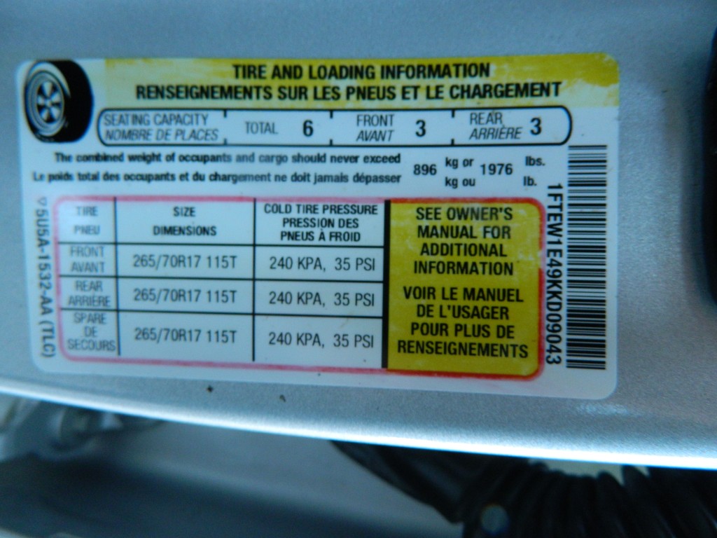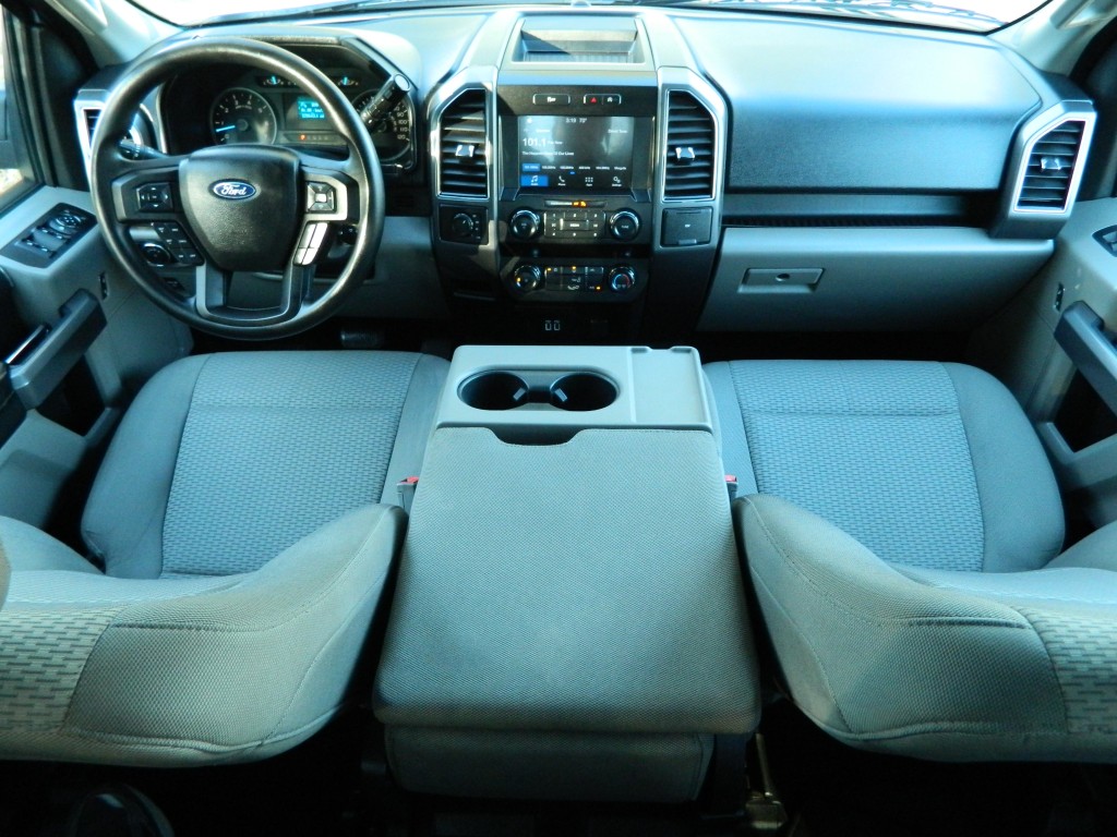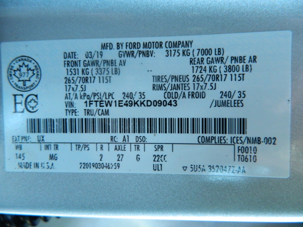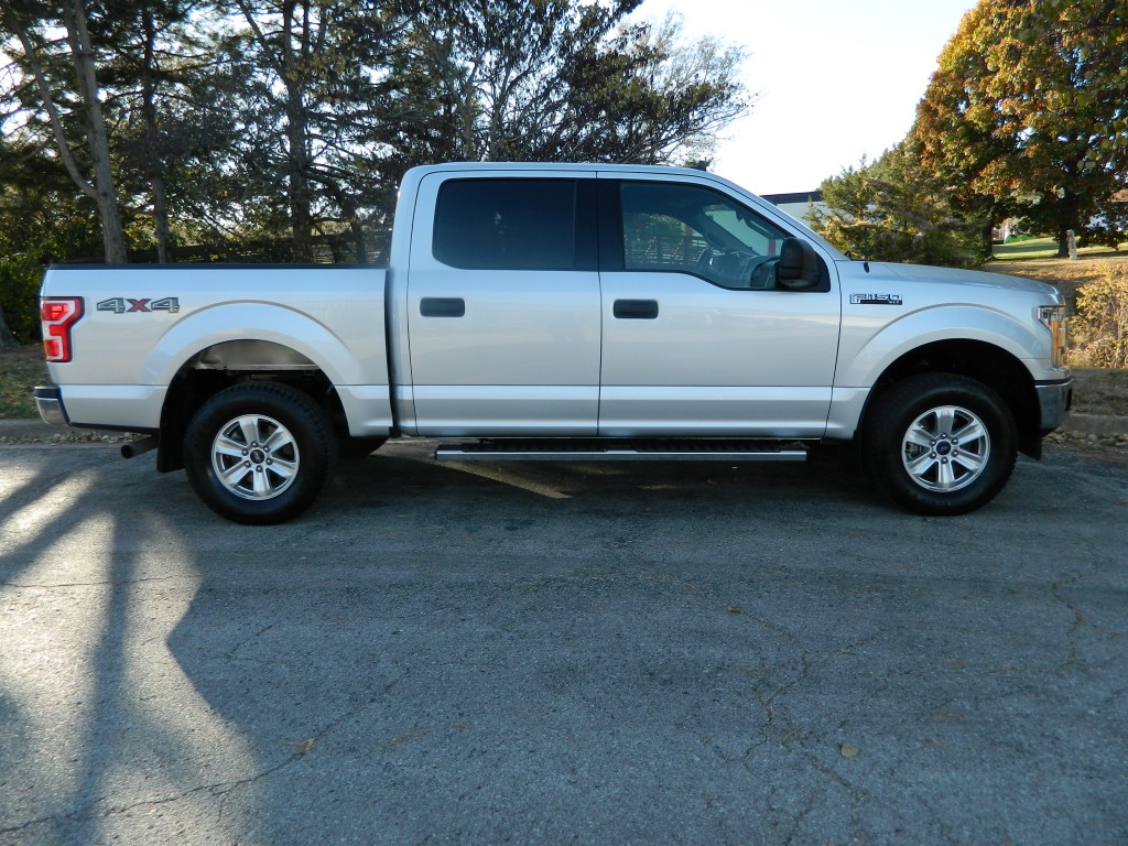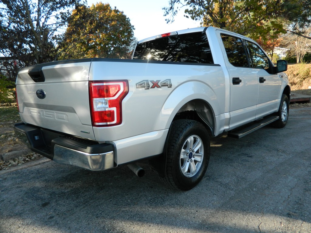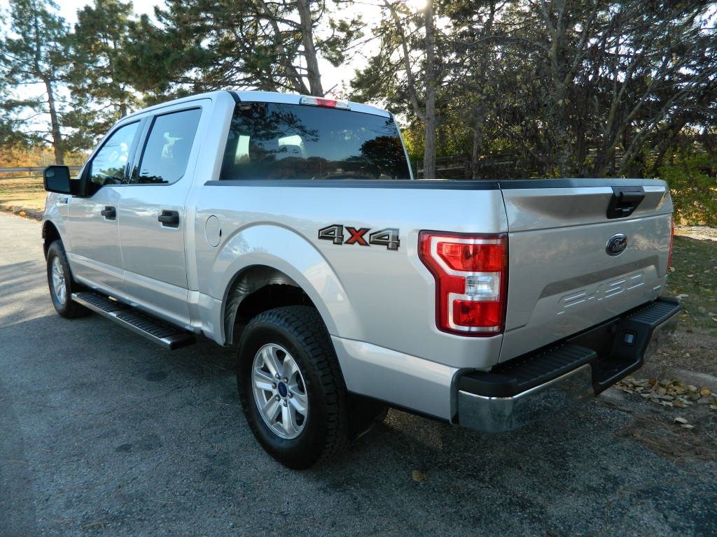 2019 Ford F-150 XLT Crew Cab with 4-wheel drive and 7,000# GVWR package and a 36 gallon fuel tank. It has the 3.5L Twin Turbo V6 EcoBoost engine with 375hp and 470ft lbs of torque, electronic 10-speed automatic transmission with manual shift and multiple drive modes, 4-wheel drive with traction control, a 3.31 axle ratio, alloy wheels and a new set of tires. Silver with chrome and black trim, chrome bumpers, fog lights, running boards, rear privacy glass, 5.5 foot bed, rear view camera, front tow hooks and a rear receiver. Interior has black carpet, gray cloth seats, seating for six. power windows, door locks and mirrors, good heat and cold A/C, sound system with AM/FM/SAT/USB/BT inputs, SYNC 3, tilt and telescopic steering column, steering wheel controls, cruise control and a lot more.