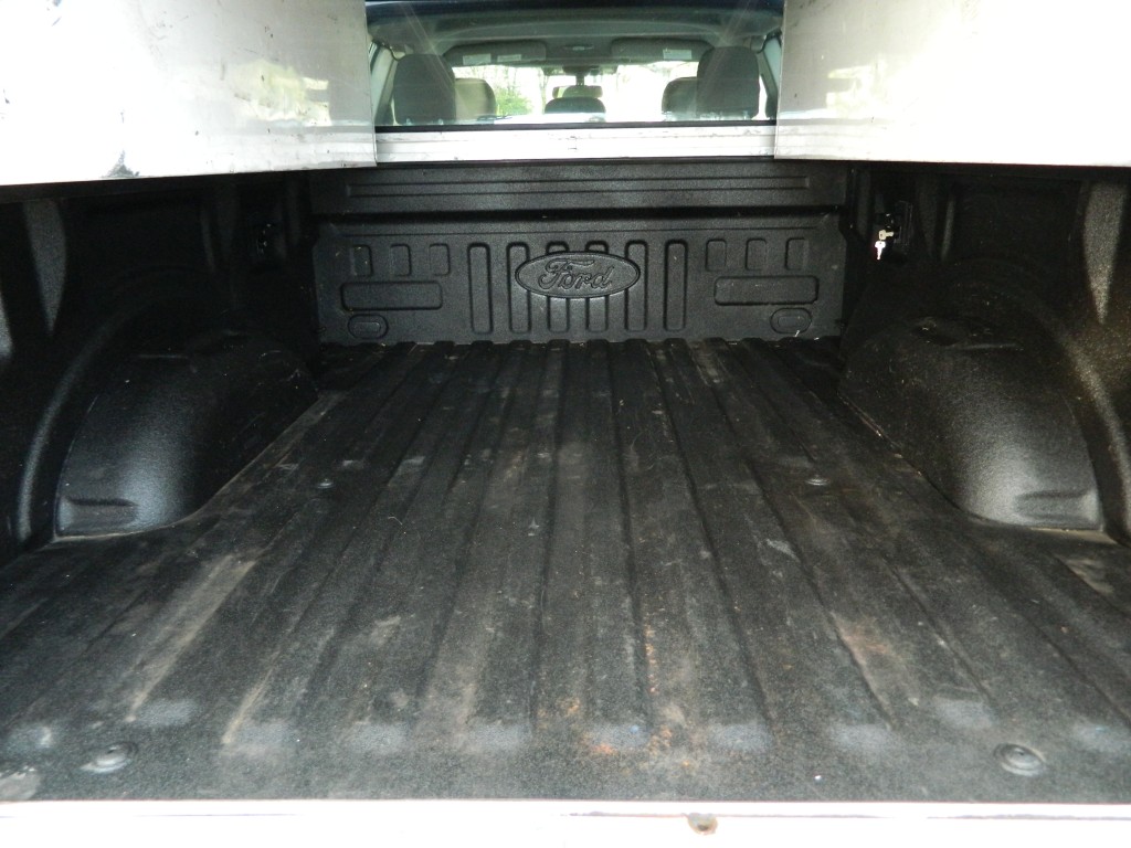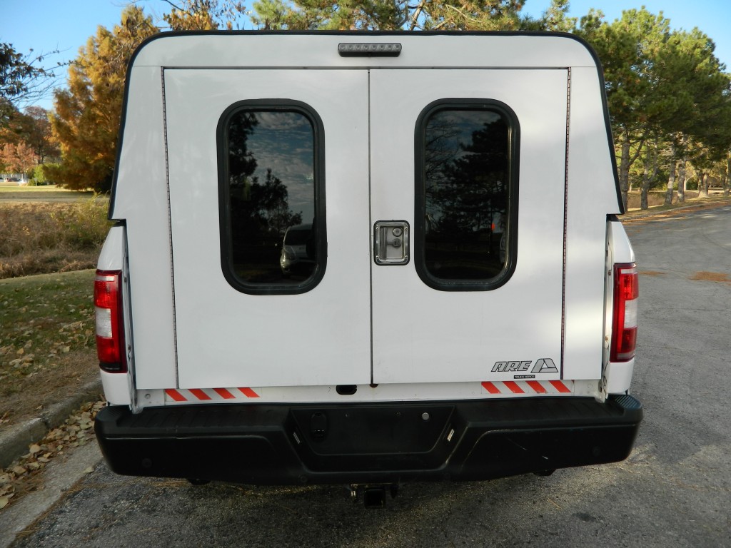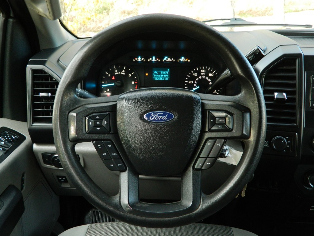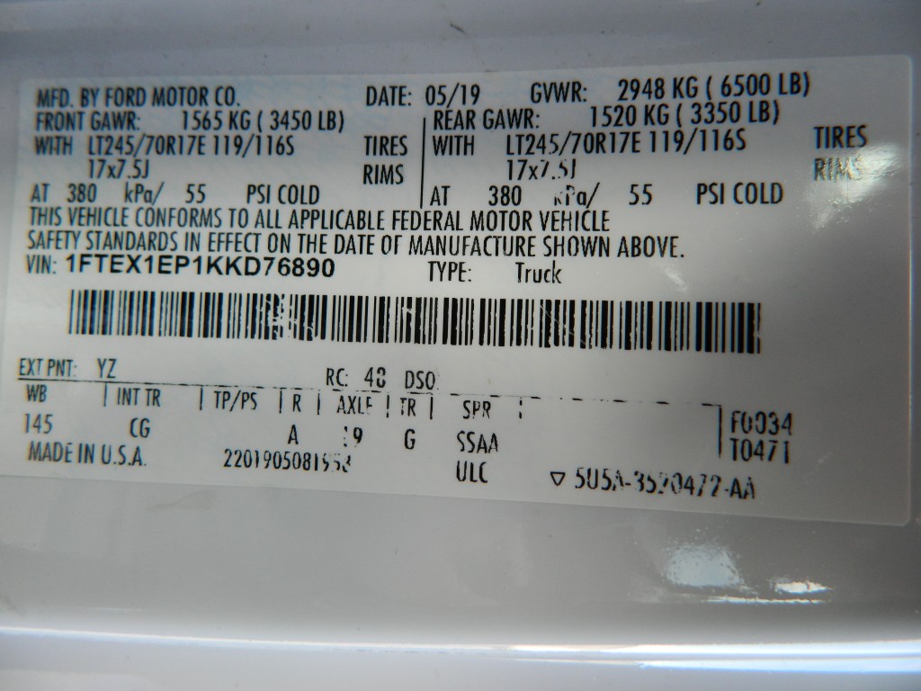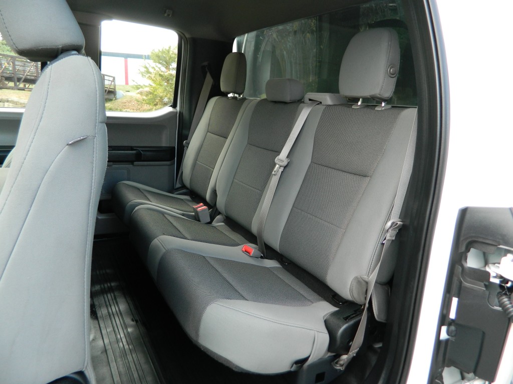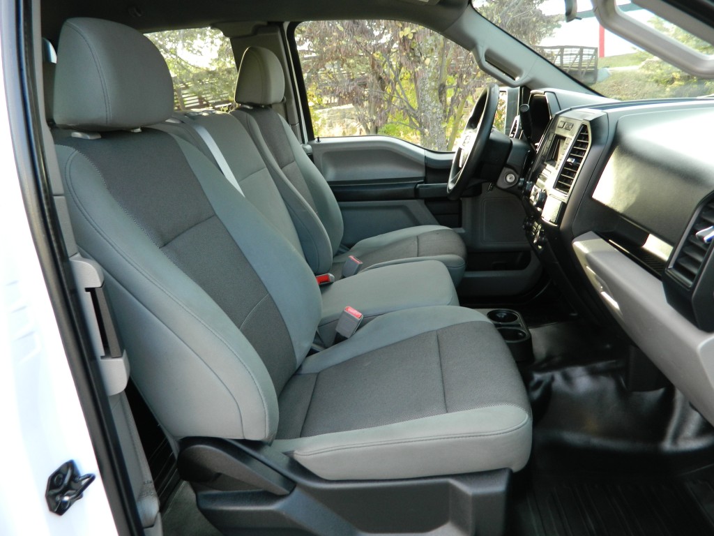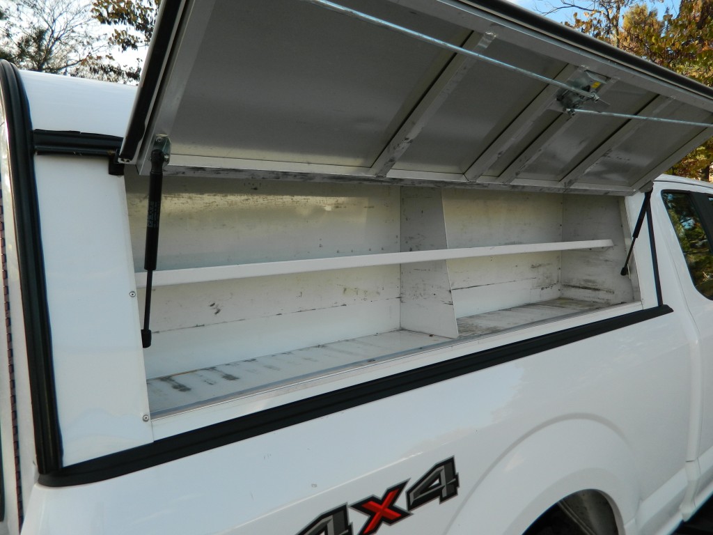 2019 Ford F-150 XL Extended Cab (SuperCab) with 4-wheel drive, XL Power Equipment Group, Trailer Tow Package, 6500# GVWR. It has the 2.7L Twin Turbo V6 EcoBoost engine with 325hp and 400ft lbs of torque, electronic 10-speed automatic transmission with manual shift and multiple driver modes, 4-wheel drive with traction control, a 3.55 electronic locking rear axle, steel wheels and an excellent set of Pirelli tires. White with black trim, rear view camera, 6.5-foot bed with a Ford Factory spray-in bed liner, an ARE model D392-23 work shell with keys, front tow hooks, rear receiver and a built-in trailer brake controller. Interior has black vinyl flooring, gray cloth seats, seating for six, power windows, door locks and mirrors, good heat and cold A/C, sound system with AM/FM/USB/BT inputs, tilt and telescopic steering column, steering wheel controls, cruise control and more.