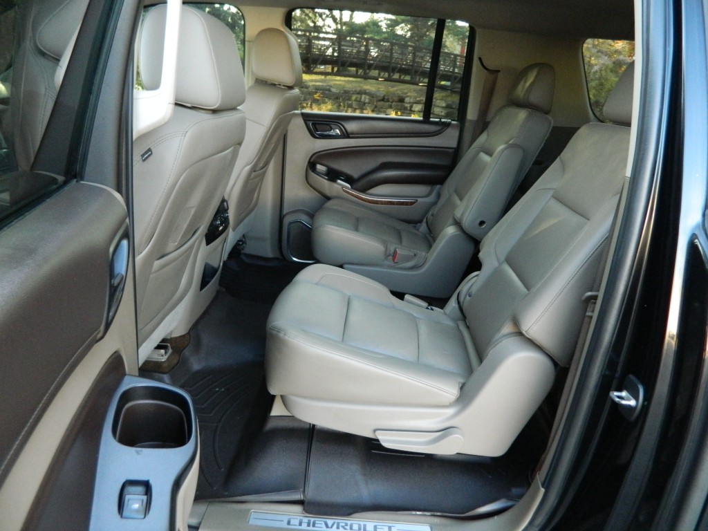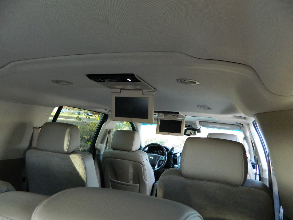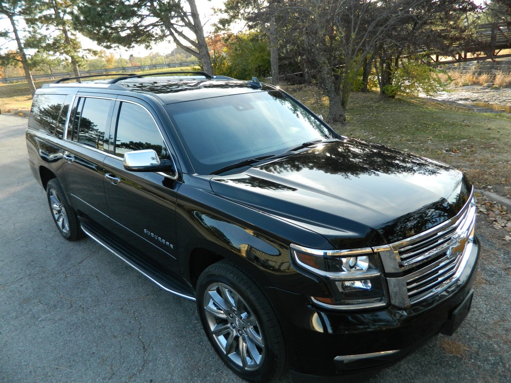 2016 Chevrolet Suburban LTZ, Seven Passenger SUV with 4-wheel drive, the trailering package and an excellent service history. It has the EcoTec3 5.3L Flex Fuel V8 engine with 355hp and 383ft lbs of torque, 6-speed automatic transmission (6L-80) with tow/haul and manual shift modes, 4-wheel drive with traction control, a 3.42 limited slip axle, alloy wheels and a new set of Hankook tires. Black with chrome trim, fog lights, running boards, roof rails with cross bars, moon roof, front and rear parking sensors, lane departure warning, rear view camera, rear receiver and a built-in trailer brake controller. Interior has Cocoa carpet and Dune leather seats, seating for seven, powered, heated and cooled front seats, power folding rear seats, power windows, door locks and mirrors, multi-zone climate control, dual video screens for the rear seats, touch screen display for the front, Bose premium sound system with AM/FM/SAT/CD/USB/BT inputs, A/V inputs, DVD, power adjustable foot pedals, power tilt and telescoping steering column, steering wheel controls, cruise control and a lot more