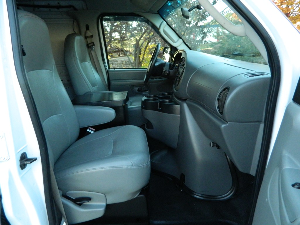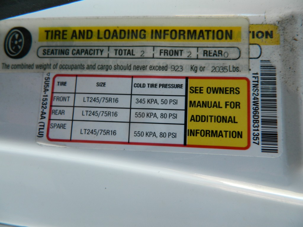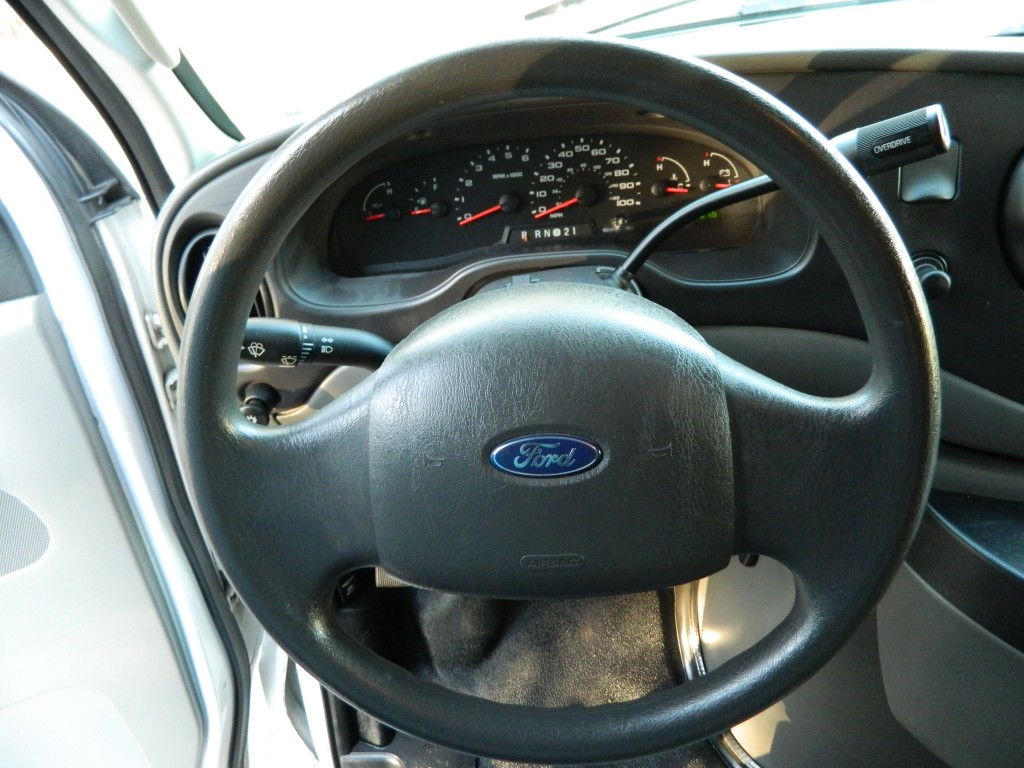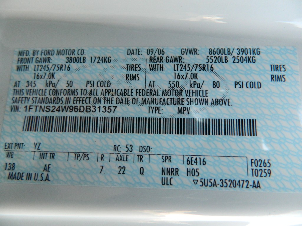 2006 Ford Econoline E250 Extended length Cargo Van, 138" wheel base, 8600# GVWR, excellent service history, very clean and straight, no rust. It has the Triton 4.6L V8 engine with 225hp and 286ft lbs of torque, 4-speed automatic transmission (4R75E) with overdrive, rear wheel drive, a 3.73 limited slip rear axle, steel wheels and a good set of tires. White with black trim, upgraded head lights and tail lights, no glass in the cargo area, rear receiver. Cargo area has black vinyl flooring, included equipment is a pair of roof racks with drip rail mounting and a partially dis-assembled steel divider for protecting the passengers. Passenger area has black vinyl flooring, gray vinyl seats, seating for two, power windows, door locks and mirrors, front and rear climate controls, sound system with AM/FM inputs, tilt steering and more.