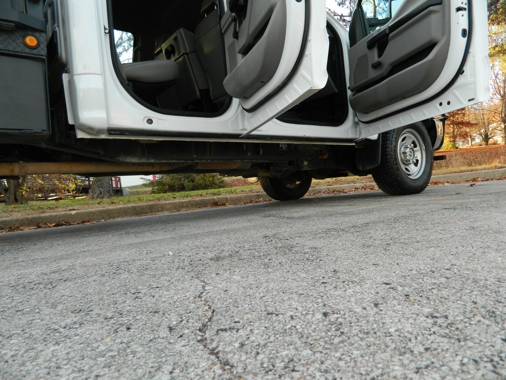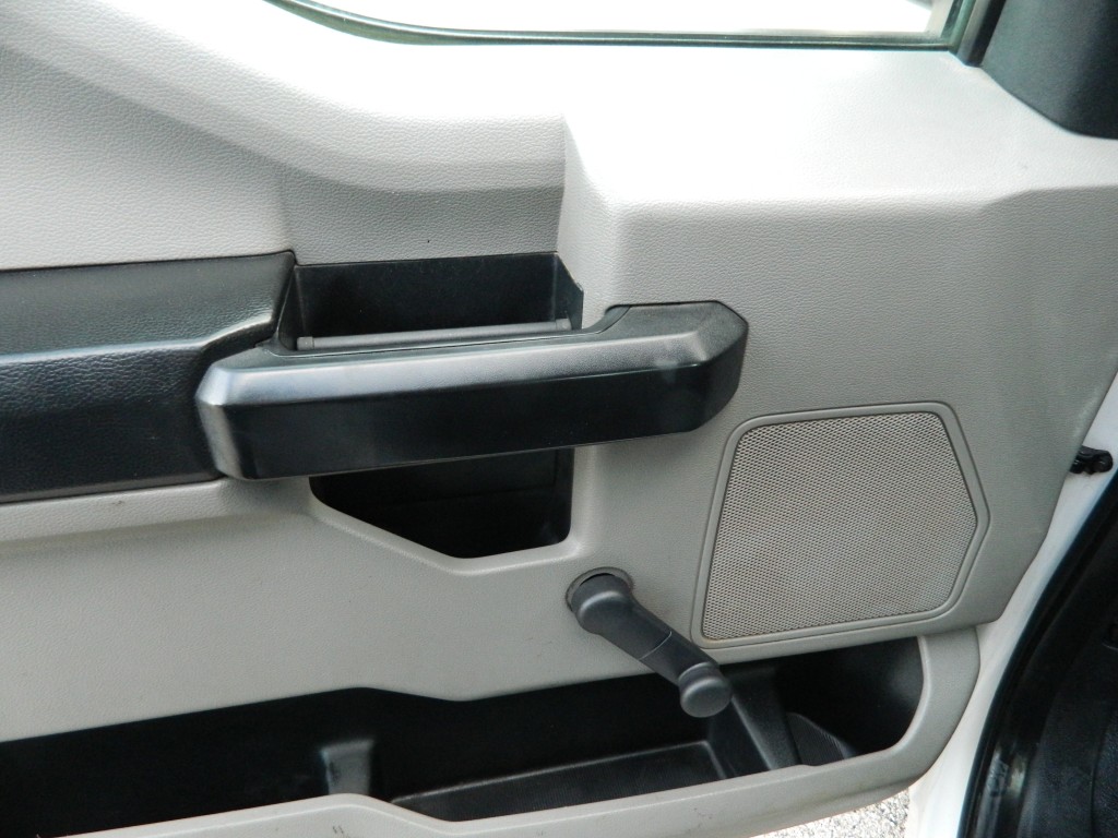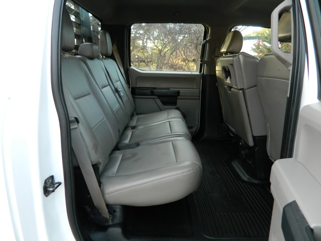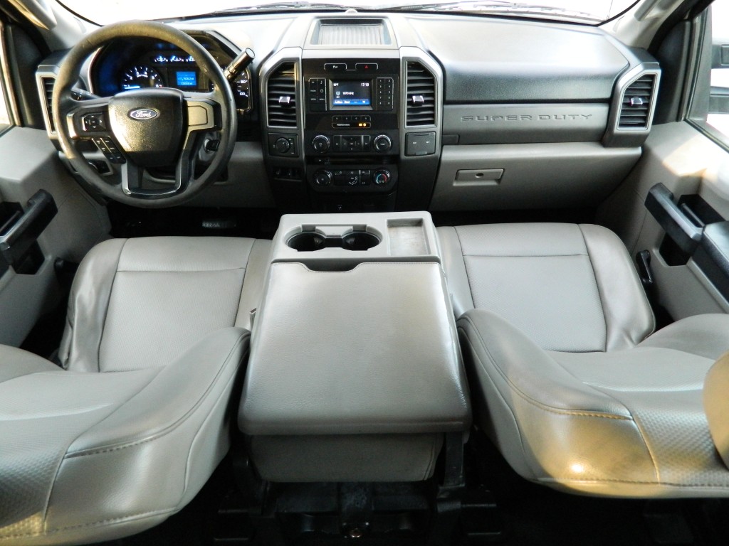 2017 Ford F-350 4x4 Crew Cab and Chassis with a 9.5 ft. flatbed and a headache rack, the XL Value and the 11,400# GVWR packages. It has the 6.2L V8 engine, 6-speed automatic transmission with tow/haul and manual shift modes, manual-select 4-wheel drive with traction control, a 3.73 electronic locking rear axle, steel wheels and a new set of tires. White with chrome and black trim, chrome front bumper, cattle guard, cab marker lights, 9.5 foot flatbed with headache rack, goose neck ball, rear receiver, front tow hooks, tow mirrors and a built-in trailer brake controller. Interior has black vinyl flooring, gray vinyl seats, seating for six, manual windows, door locks and mirrors, good heat and cold A/C, sound system with AM/FM/CD/AUX inputs, tilt and telescopic steering column, cruise control and more.