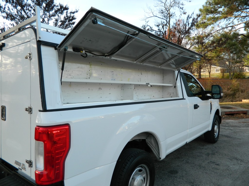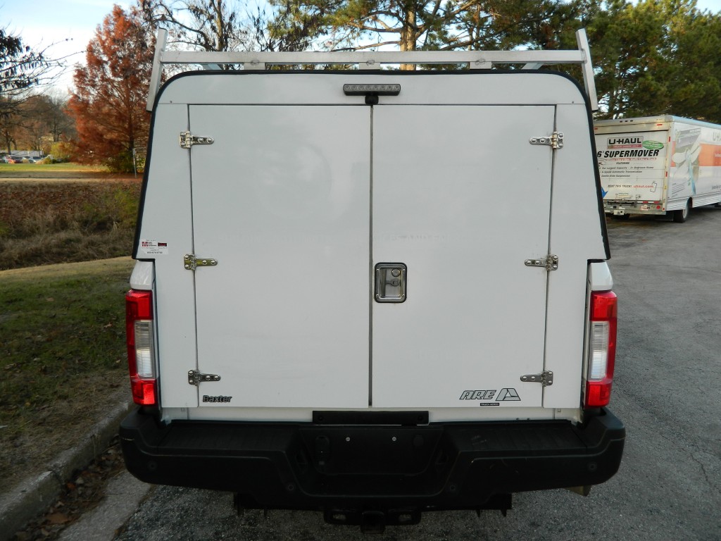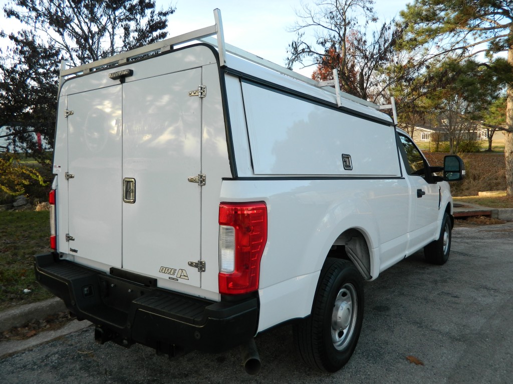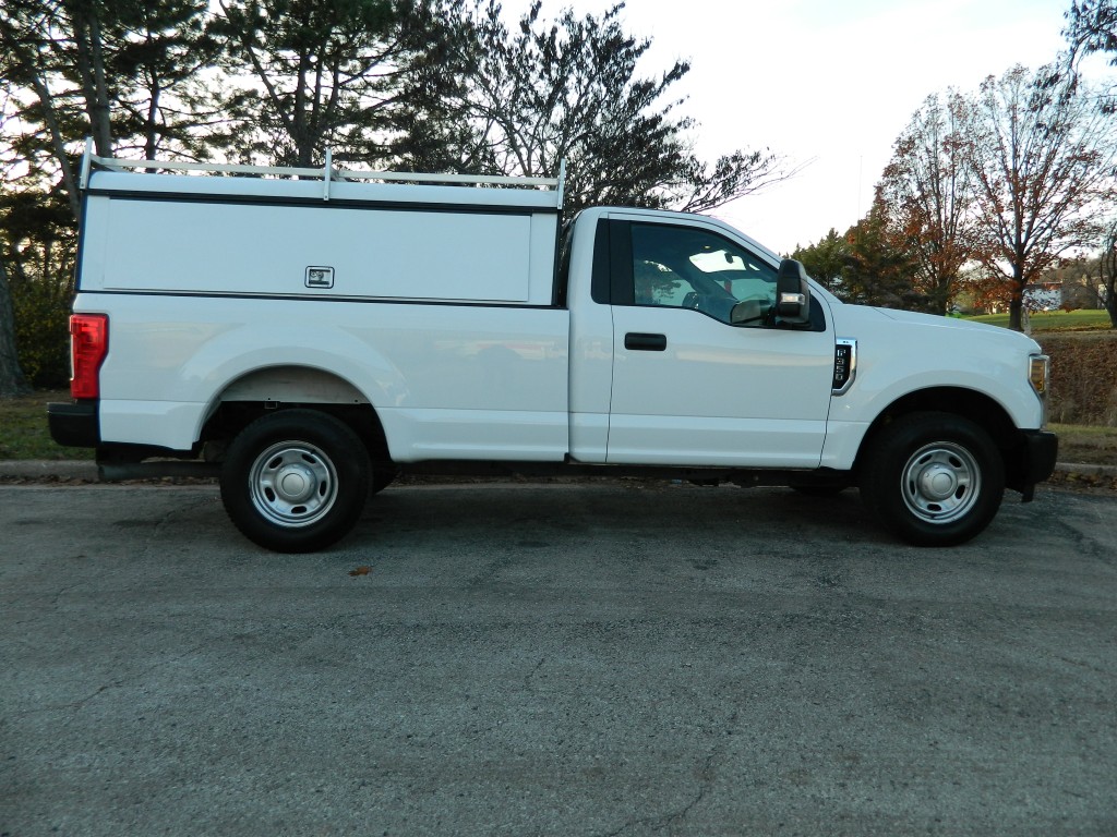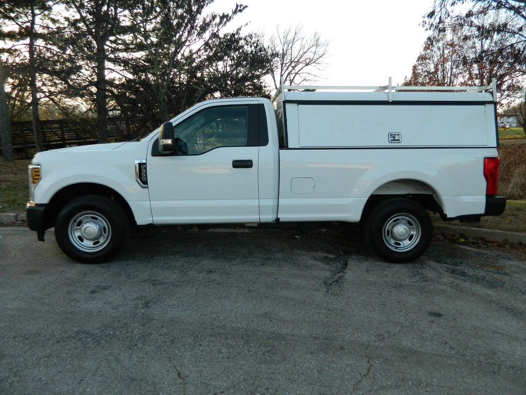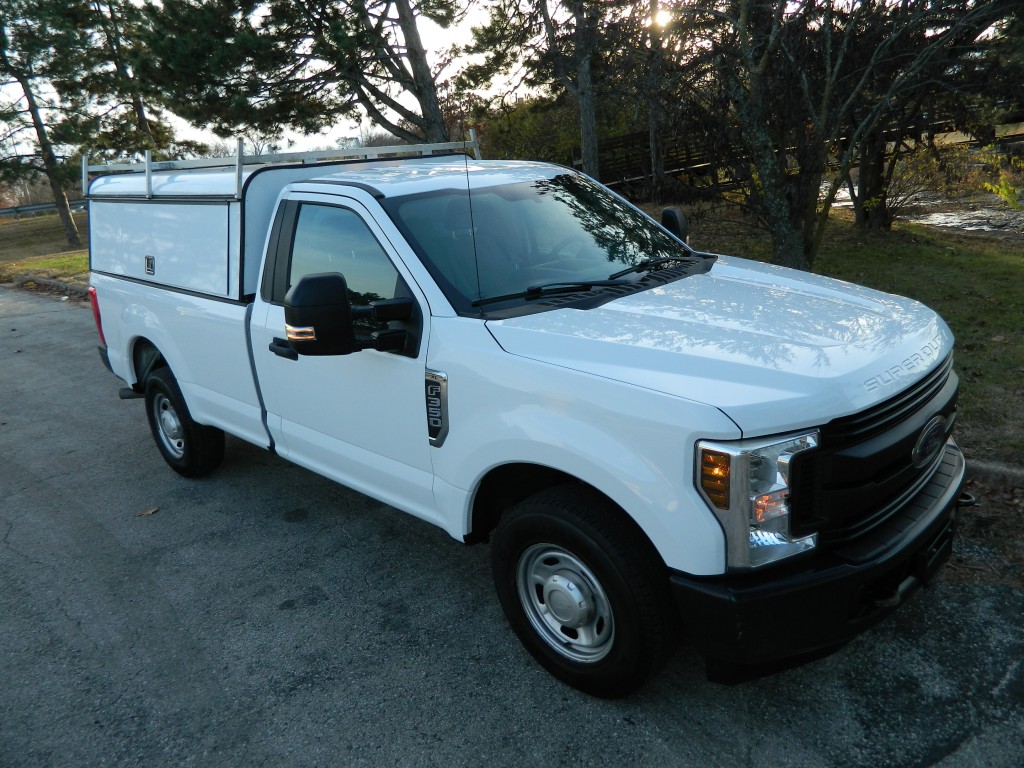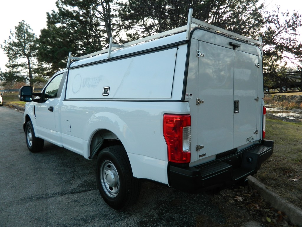 2019 Ford F-350 XL Regular Cab Work Truck, Rear Wheel drive with a locking axle, 8-foot bed with an ARE Work Shell, 10,000# GVWR and the Power Equipment Group. A very nice, one owner truck with a good service history and no accidents as reported by Carfax. It has the 6.2L Flex Fuel V8 engine with 385hp and 430ft lbs of torque, 6-speed automatic transmission with tow/haul and manual shift modes, rear wheel drive with a 3.73 electronic locking rear axle, steel wheels and an excellent set of tires. White with black trim, ARE Work shell (model DM399-26), rear view camera, front tow hooks, tow mirrors, rear receiver and a built-in trailer brake controller. Interior has black vinyl flooring, gray cloth seats, seating for three, power windows, door locks and mirrors, good heat and cold A/C, 400 watt power inverter, sound system with AM/FM/USB/BT inputs, tilt and telescopic steering column, steering wheel controls, cruise control and more.