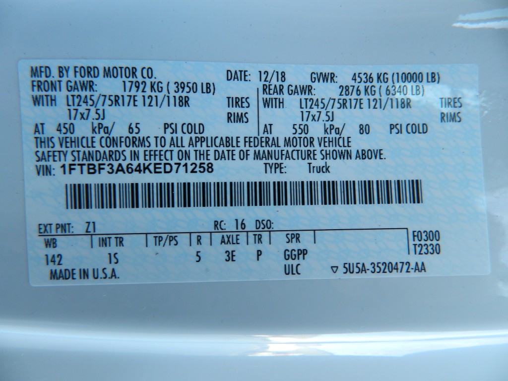 - Vin1FTBF3A64KED71258
