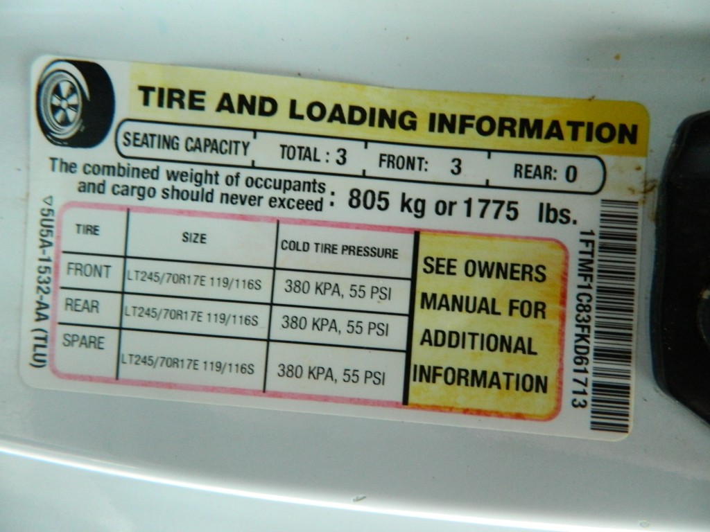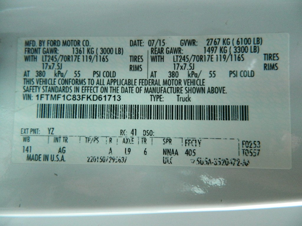 2015 Ford F-150 XL Regular Cab, Long Bed, Rear Wheel Drive with an electronic locking axle. This is a good work truck with no accidents as reported by Carfax. It has the 3.5L Flex Fuel (non-turbo) V6 engine with 282hp and 253ft lbs of torque, electronic 6-speed automatic transmission with tow/haul and sport modes, rear wheel drive with traction control, a 3.55 electronic locking rear axle, steel wheels and a good set of tires. White with black trim, long bed (8-ft) with bed liner, parking sensors, rear view camera, rear receiver. Interior has black vinyl flooring, gray vinyl seats, seating for three, power windows, door locks and mirrors, good heat and cold A/C, sound system with AM/FM/AUX inputs, tilt and telescopic steering column, cruise control and more.