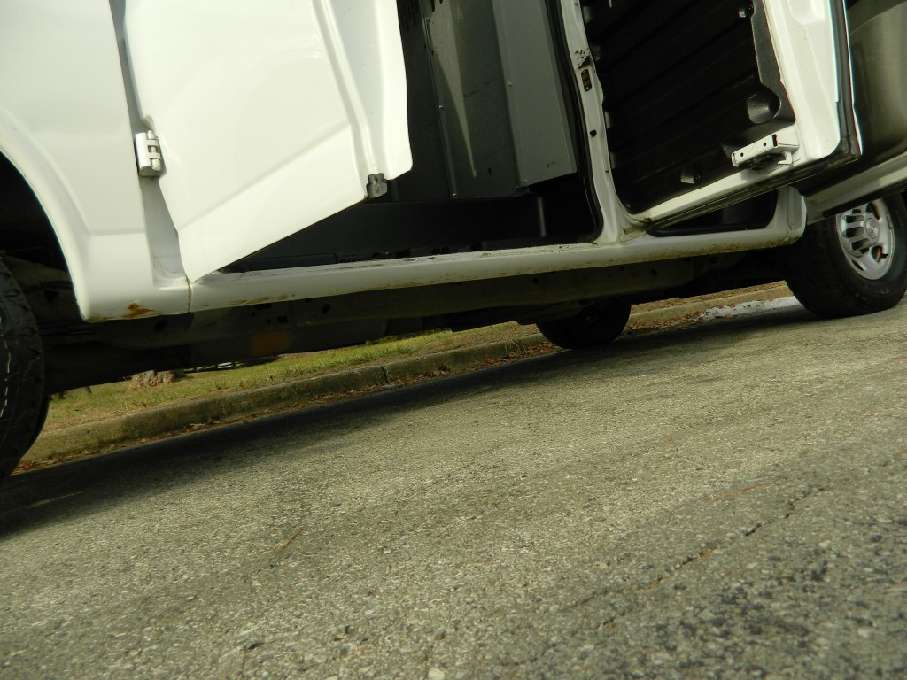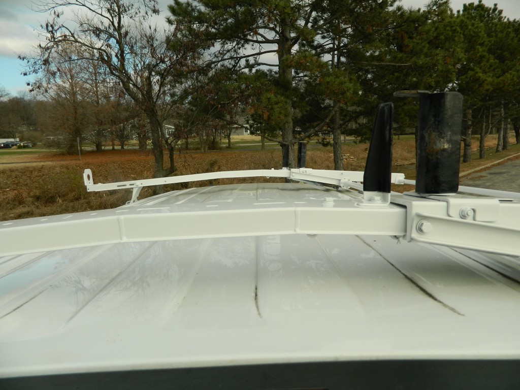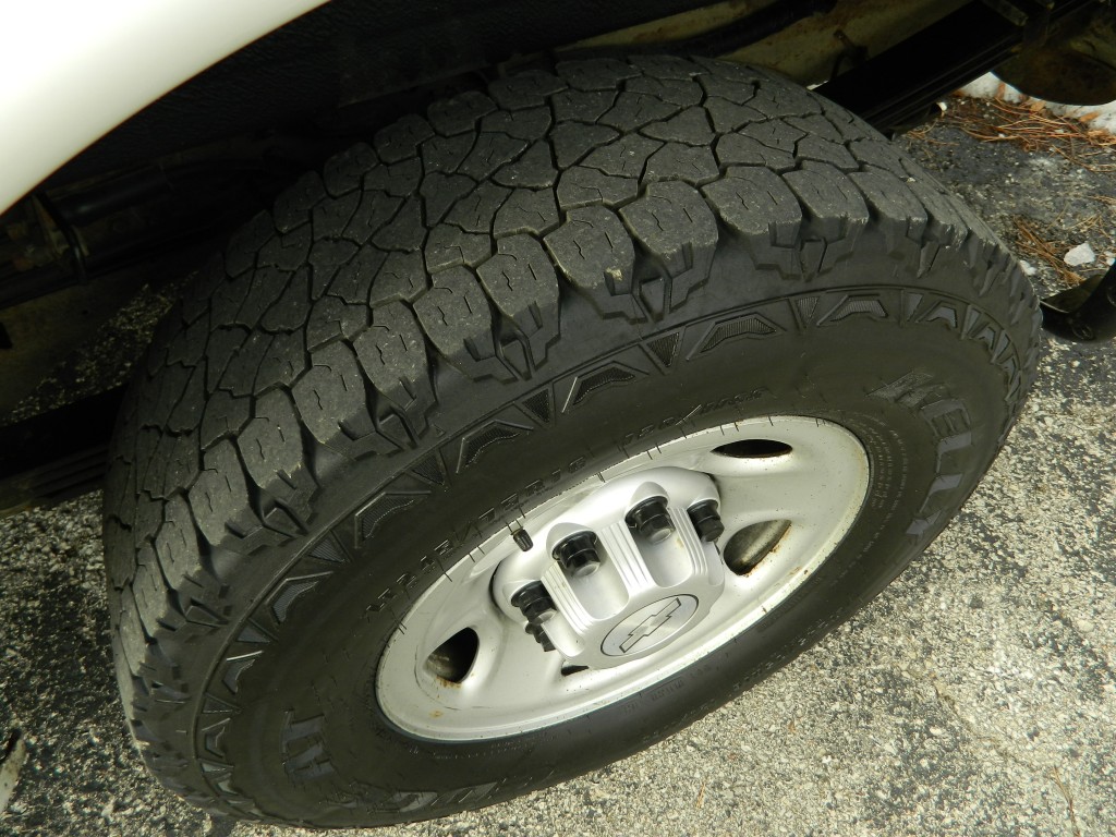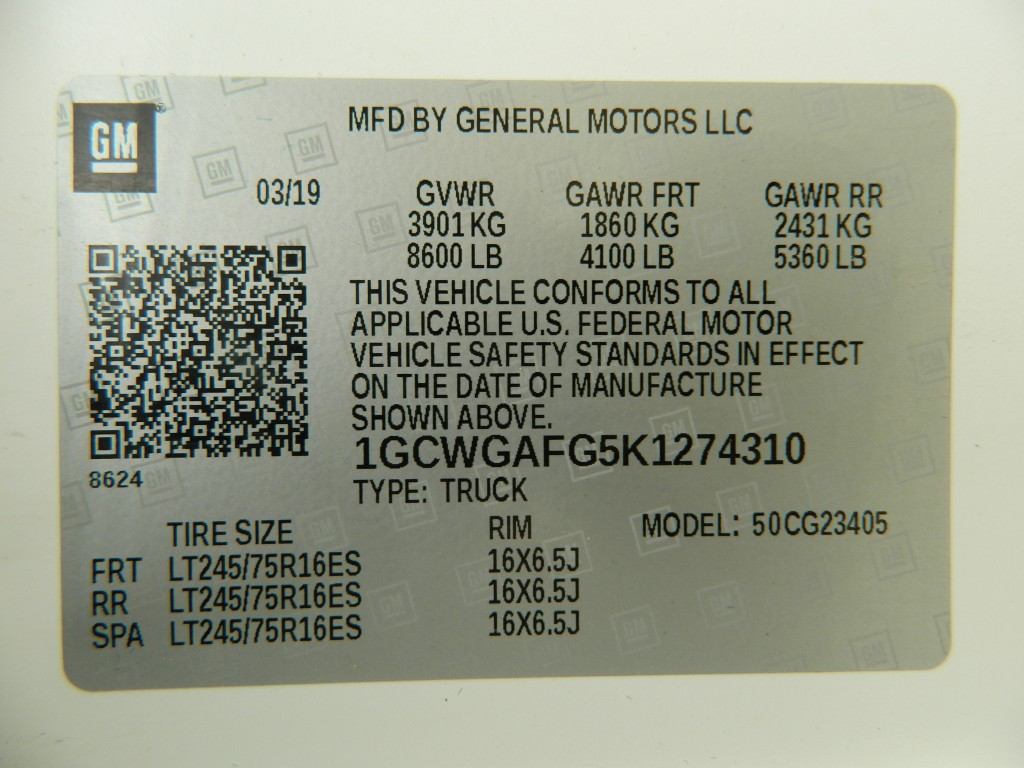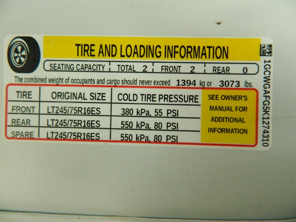 2019 Chevrolet Express 2500 Cargo Van with a ladder rack. This is a one-owner van with an excellent service history and no accidents as reported by Carfax. It has the Vortec 6.0L Flex Fuel V8 engine with 341hp and 373ft lbs of torque, 6-speed automatic transmission (6L-90) with tow/haul and manual shift modes, rear wheel drive with traction control, a 3.42 limited slip rear axle, steel wheels and an excellent set of tires. White with black trim, parking sensors, rear view camera, Ladder rack. Cargo area has solid panels all around (no glass), black vinyl flooring, one steel shelf unit and a steel divider protecting the passengers. Passenger area has black vinyl flooring, gray vinyl seats, seating for two, power windows, door locks and mirrors, good heat and cold A/C, sound system with AM/FM/SAT/CD/AUX/BT inputs, tilt steering, steering wheel controls, cruise control and more.