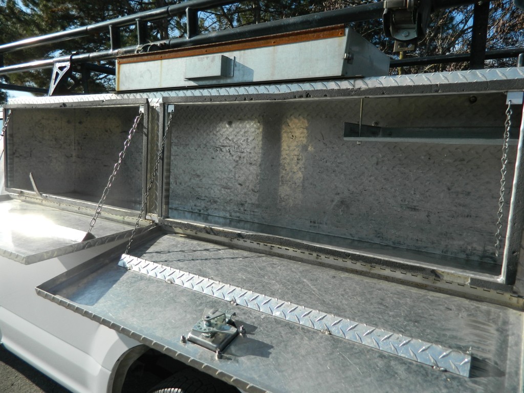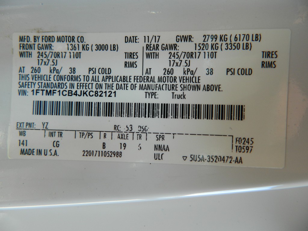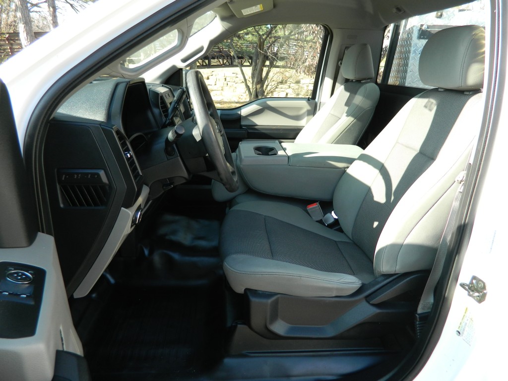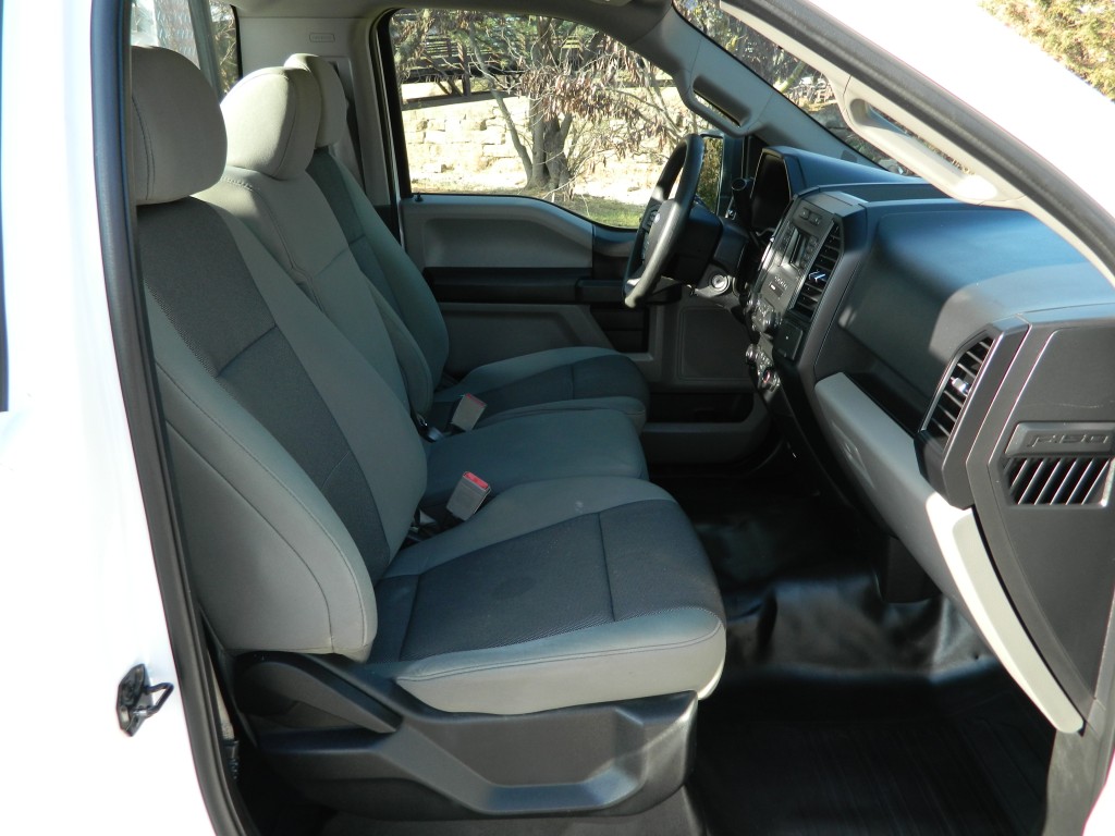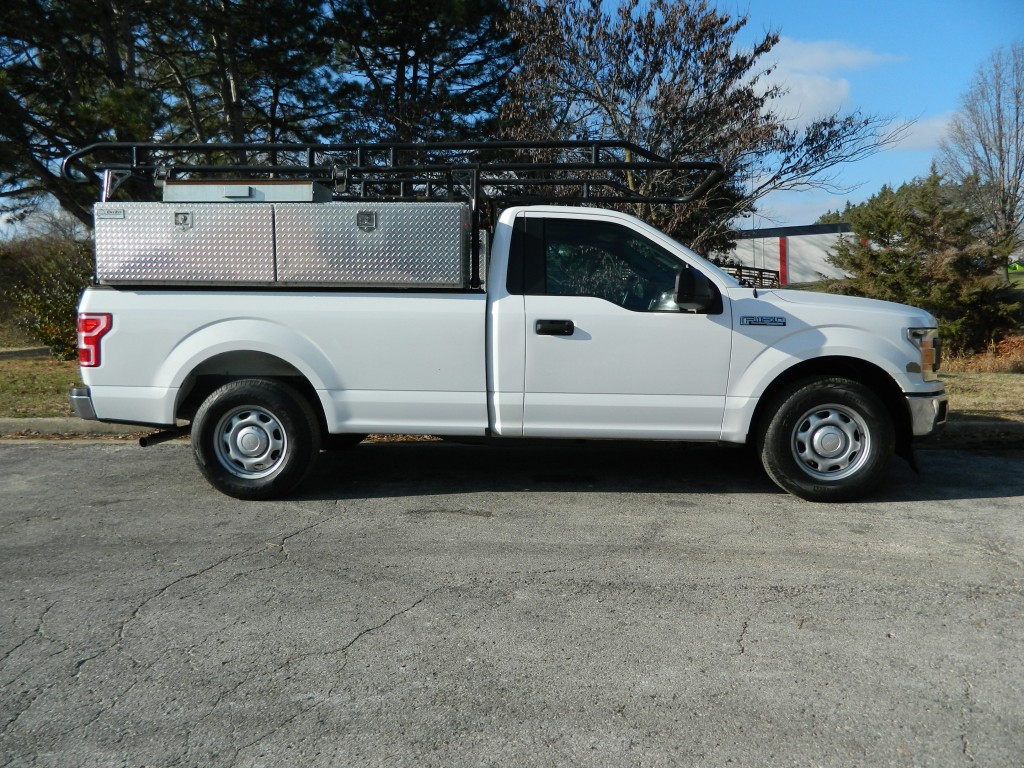 2018 Ford F-150 XL Regular Cab, Long Bed with a 3.3L V6, Rear Wheel Drive, tool boxes and an overhead Rack, 6170# GVWR package, XL Power Equipment Group. Good service history and no accidents as reported by Carfax. It has the Duratec 3.3L Flex Fuel V6 engine with 290hp and 265ft lbs of torque, electronic 6-speed automatic transmission with manual shift and multiple drive modes, Rear Wheel drive with traction control, a 3.55 axle ratio, steel wheels and a new set of Pirelli tires. White with black trim, chrome bumpers, fog lights, 8-foot bed with bed liner, DeeZee tool boxes, overhead pipe rack with ratchet straps, rear view camera, rear receiver. Interior has black vinyl flooring, gray cloth seats, seating for three, power windows, door locks and mirrors, good heat and cold A/C, sound system with AM/FM/CD/USB/BT inputs, SYNC, tilt and telescopic steering column, steering wheel controls, cruise control and more.