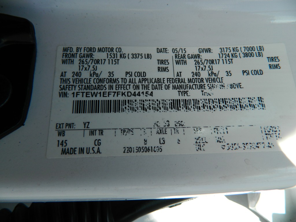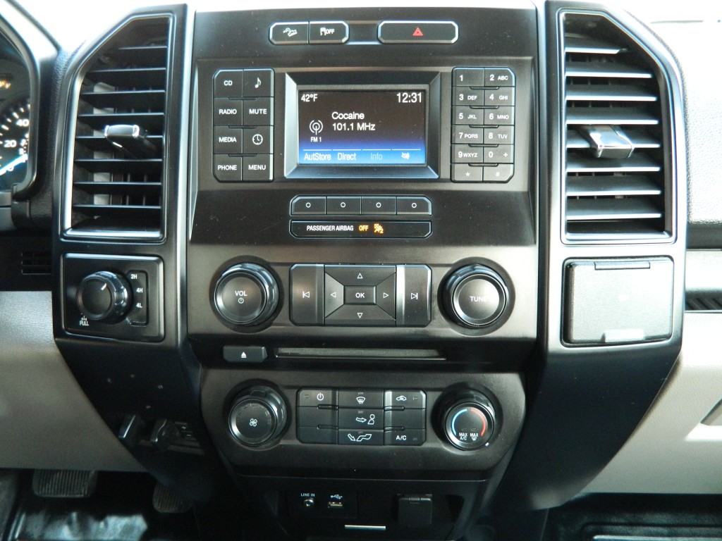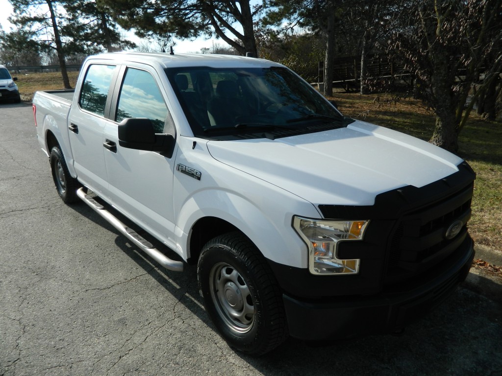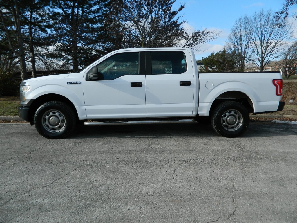 2015 Ford F-150 XL Crew Cab with 4-wheel drive, 5.0L V8, Trailer Tow Package, 7000# GVWR, the FX4 Off-Road package and a new set of tires. This is a one owner, corporate fleet truck with no accidents as reported by Carfax. It has the 5.0L Flex Fuel V8 engine with 385hp and 387ft lbs of torque, electronic 6-speed automatic transmission with tow/haul, Sport and manual shift modes, 4-wheel drive with traction control, a 3.31 electronic locking rear axle, steel wheels and a new set of tires. White with black trim, running boards, 5.5-ft bed, rear receiver, front tow hooks and a built-in trailer brake controller. Interior has black vinyl flooring, gray cloth seats, seating for six, power windows, door locks and mirrors, good heat and cold A/C, sound system with AM/FM/CD/USB/AUX/BT inputs, SYNC, tilt and telescopic steering column, steering wheel controls, cruise control and more.
