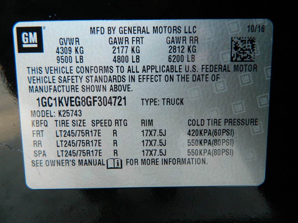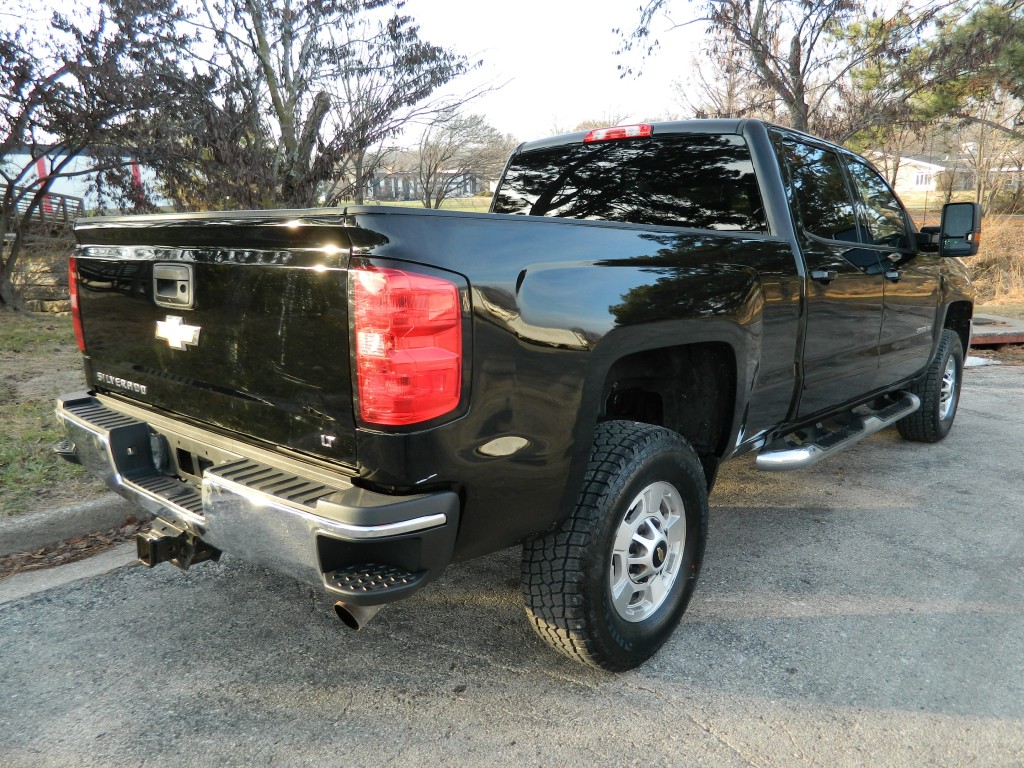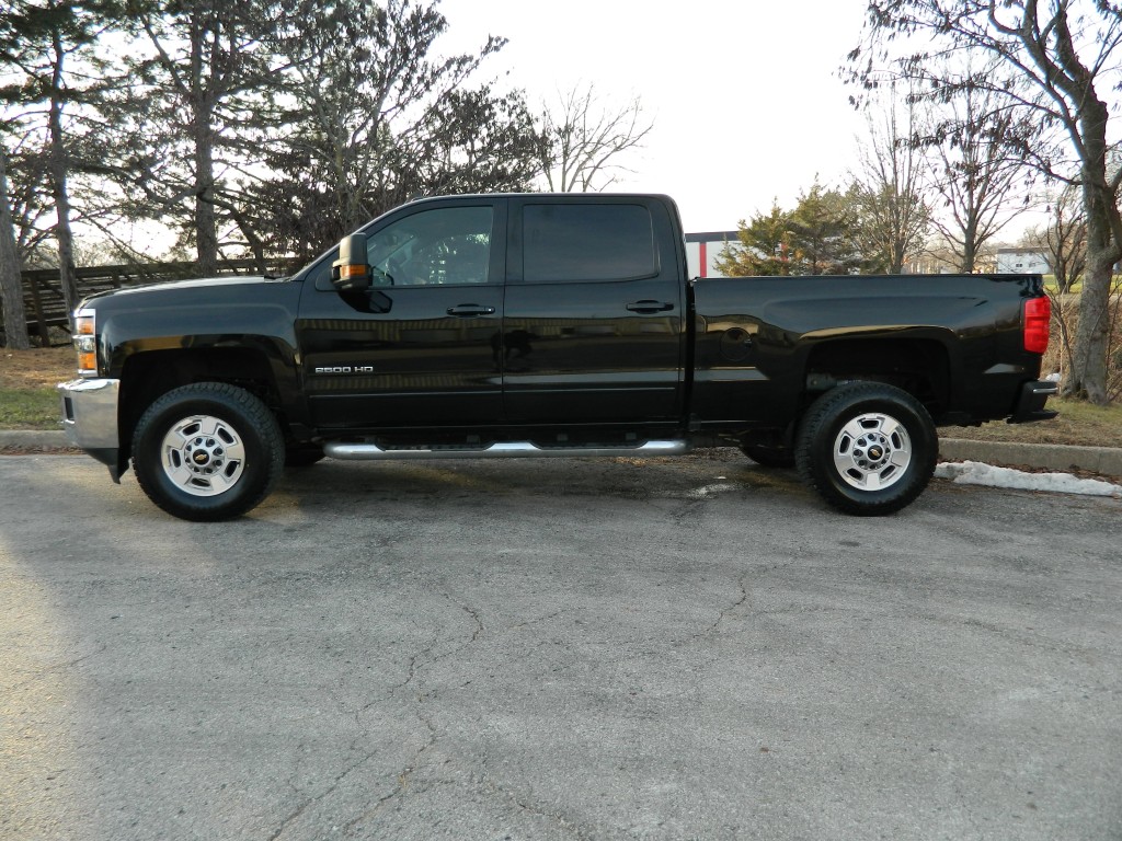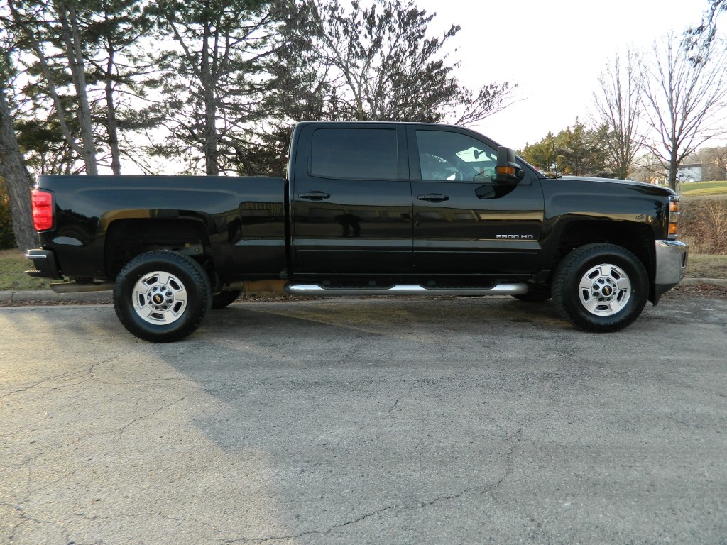 2016 Chevrolet Silverado 2500HD LT Crew Cab with 4-wheel drive, an excellent service history, great reliability and no accidents as reported by Carfax. It has the Vortec 6.0L Flex Fuel V8 engine with 360hp and 380ft lbs of torque, 6-speed automatic transmission (6L-90) with tow/haul and manual shift modes, 4-wheel drive with traction control, a 4.10 limited slip differential, alloy wheels and a new set of tires. Black with chrome and black trim, chrome bumpers, corner step rear bumper, fog lights, running boards, rear view camera, 6.5-foot bed with a B-W hitch, rear receiver, front tow hooks, tow mirrors and an integrated trailer brake controller. Interior has black carpet, black cloth seats, seating for six, powered driver's seat, power windows, door locks and mirrors, dual-zone climate control, sound system with AM/FM/SAT/CD/USB/AUX/BT inputs, tilt steering, steering wheel controls, cruise control and more.