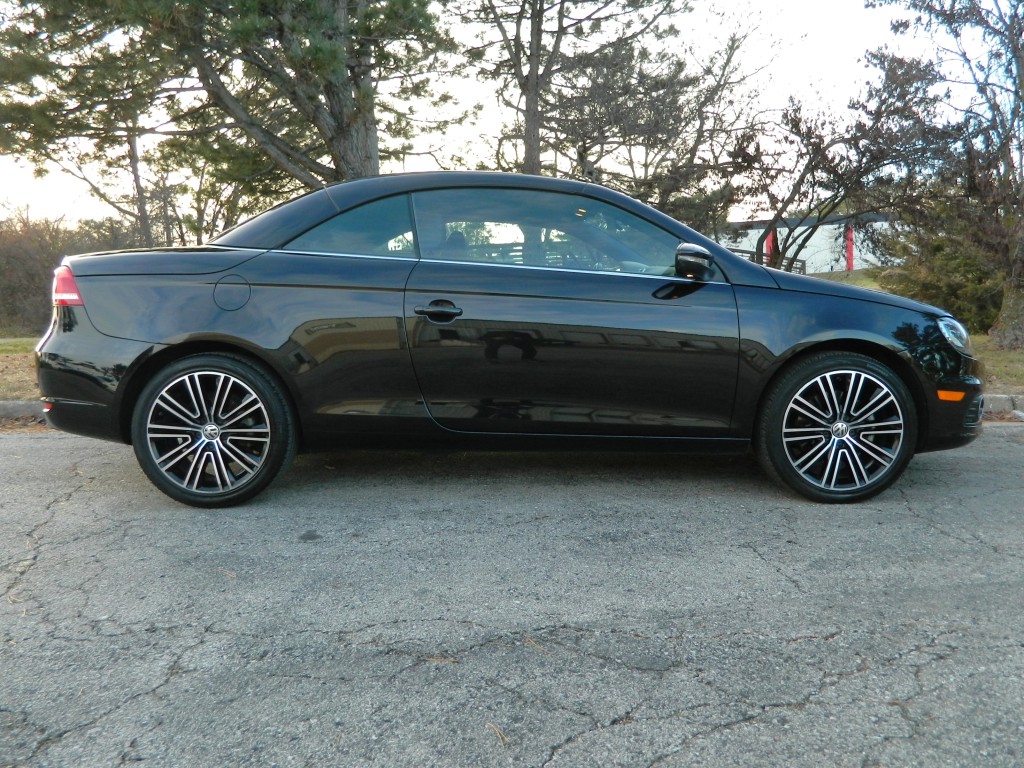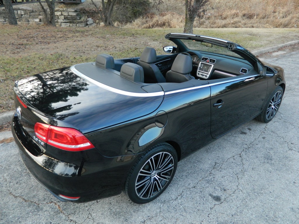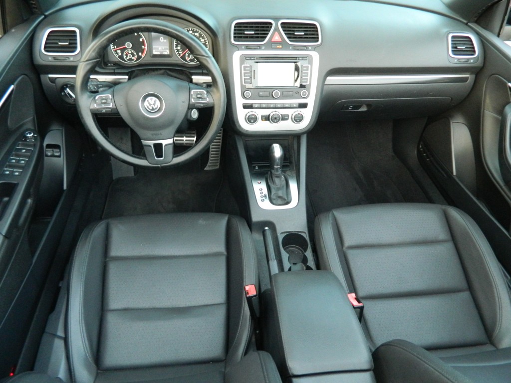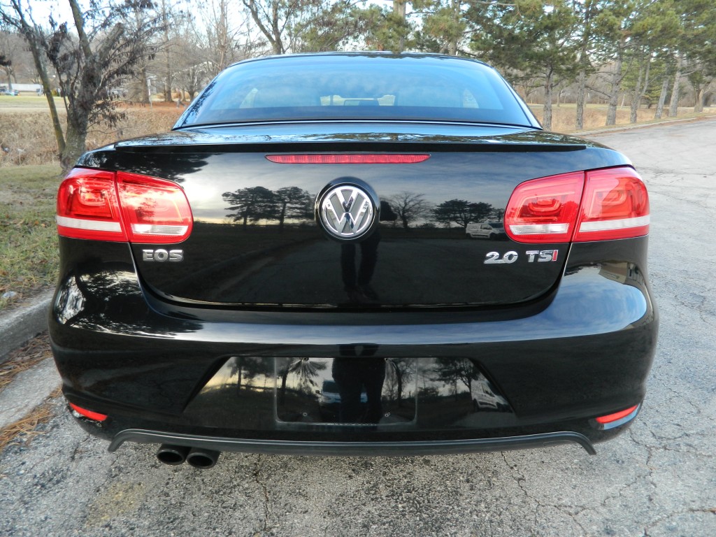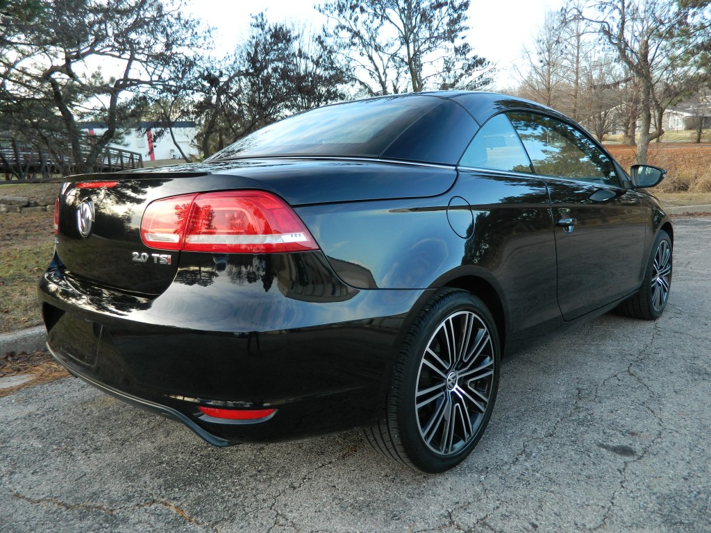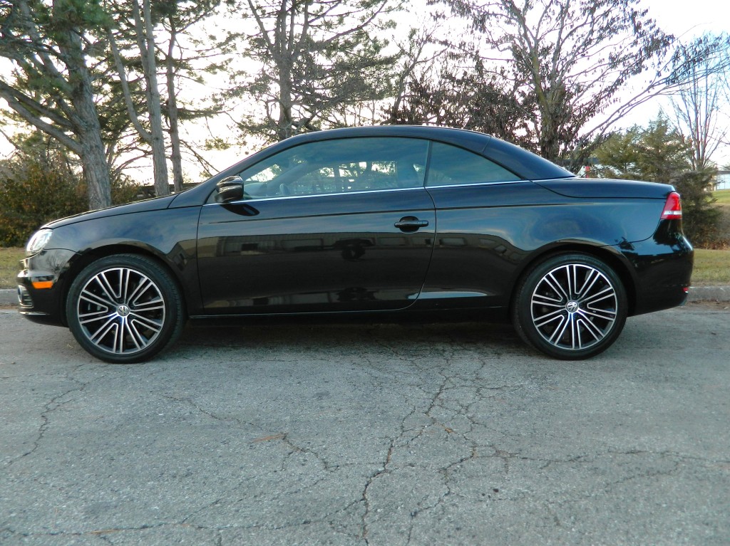 2014 Volkswagen EOS Sport SULEV (SUper-Low-Emissions-Vehicle), 2-door Convertible Hard Top with low miles and no accidents as reported by Carfax. It has the 2.0L Turbocharged I4 engine with 200hp and 207ft lbs of torque, 6-speed DSG automatic transmission with Tiptronic Driver selectable mode and oil cooler, front wheel drive with traction control, 4.06 axle ratio, alloy wheels and an excellent set of Continental "ContiProContact" tires. Black with paint-matched and chrome trim, fog lights, moon roof, convertible hard top. Interior has black carpet, black leather seats, seating for four, powered and heated front seats, power windows, door locks and mirrors, touch screen display, Navigation, dual-zone climate control, sound system with AM/FM/SAT/CD/BT inputs, tilt and telescopic steering column, steering wheel controls, cruise control and a lot more.