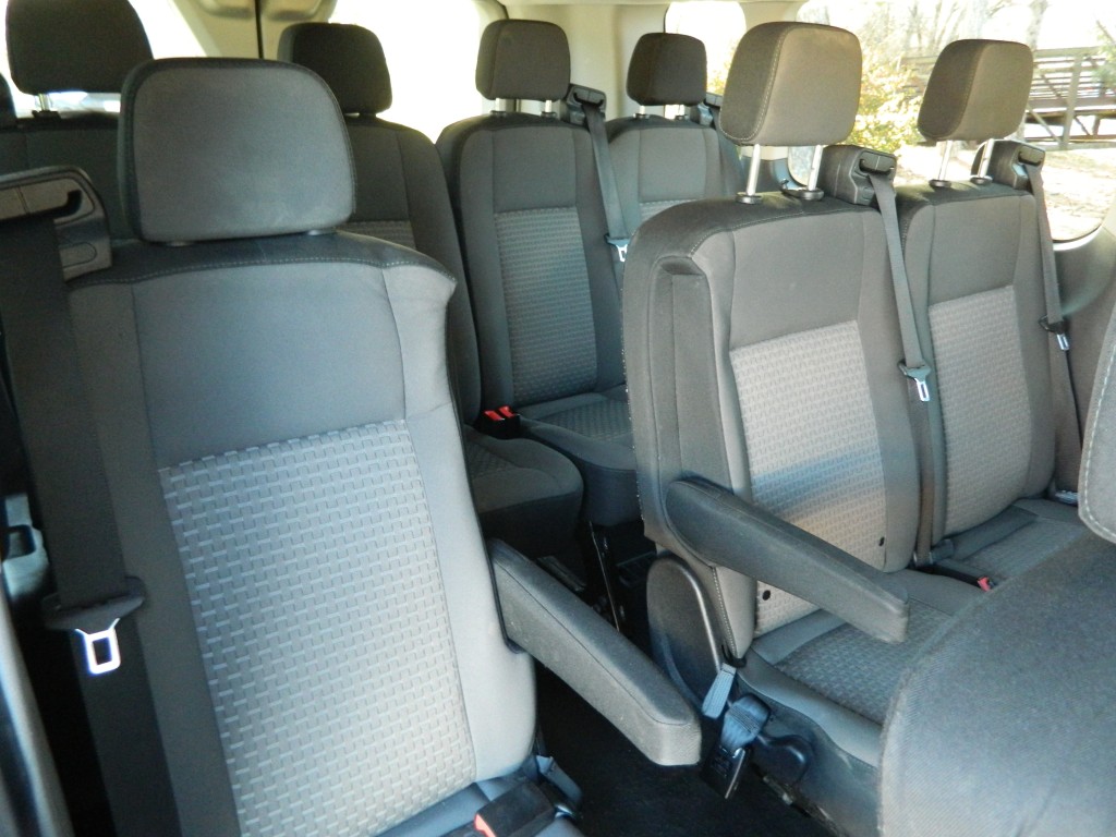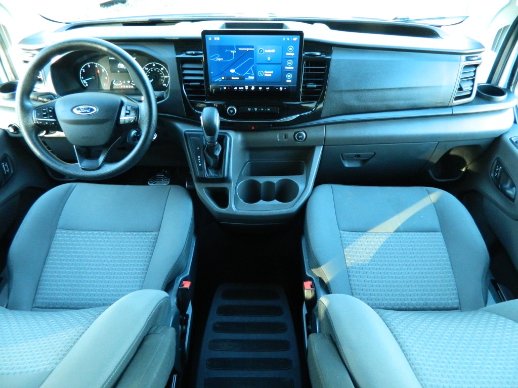 2023 Ford Transit 350 XLT 12-passenger van, 148" wheel base and the 9,250# GVWR a very nice, one-owner passenger van with no accidents as reported by Carfax. It has the 3.5L Twin Turbo V6 EcoBoost engine with 310hp and 400ft lbs of torque, 10-speed automatic transmission with manual shift and multiple drive modes, rear wheel drive with traction control, a 3.73 axle ratio, steel wheels and a new set of tires. White with black trim, fog lights, privacy glass, Blind Spot Assist, Lane Keeping System, front and rear parking sensors, rear view camera. Interior has black carpet, black cloth seats, seating for twelve, power windows, door locks and mirrors, front and rear climate control, entertainment system with AM/FM/SAT/BT, Apple CarPlay, Android Auto, SYNC 4, tilt and telescopic steering column, steering wheel controls, cruise control and a lot more.